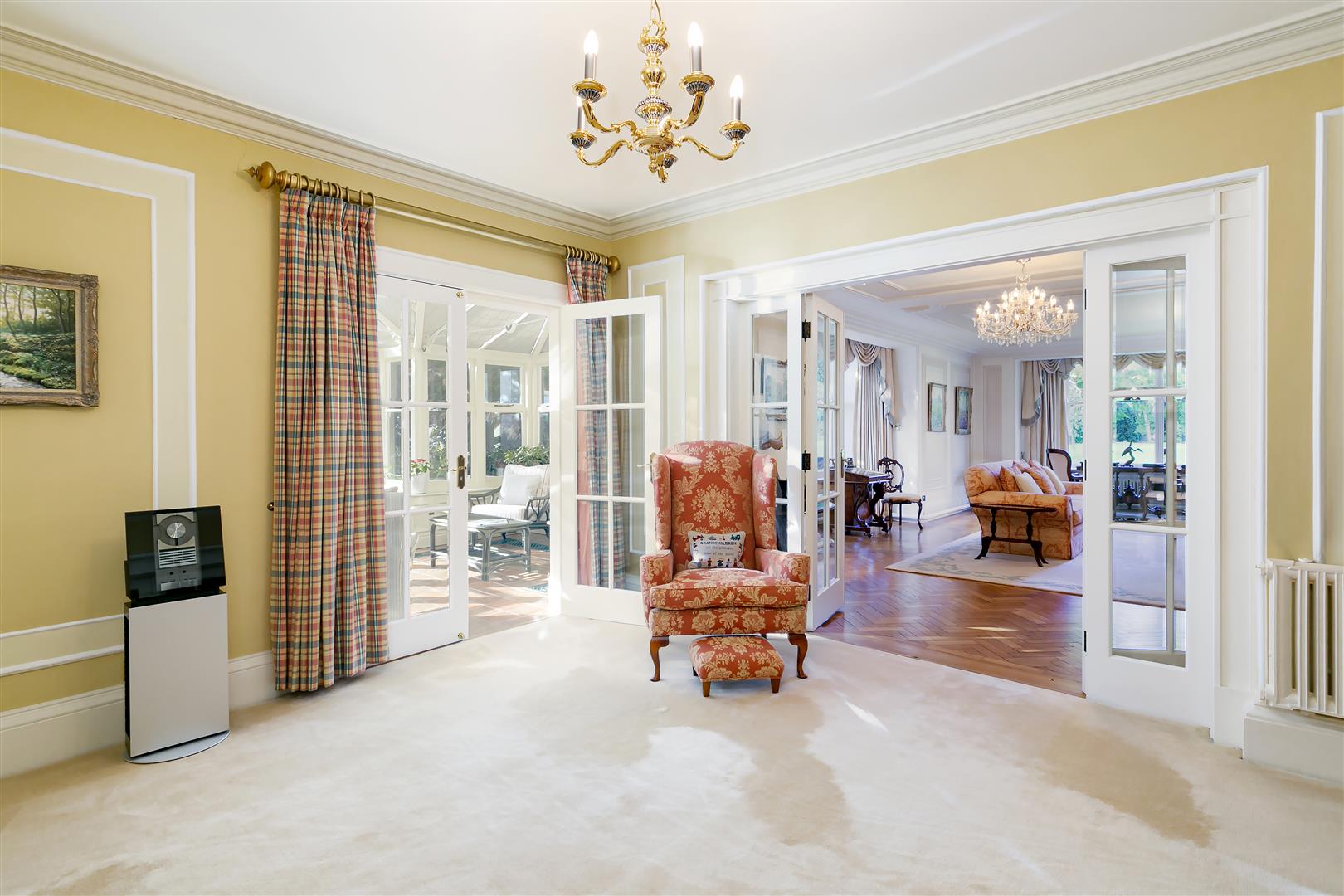 Sitting Room - 4.42m x 3.99m approx (14'6 x 13'1 approx) - With feature carved fireplace, marble hearth and backplate. This room is circulation space providing access to the drawing room, conservatory, living room and library.