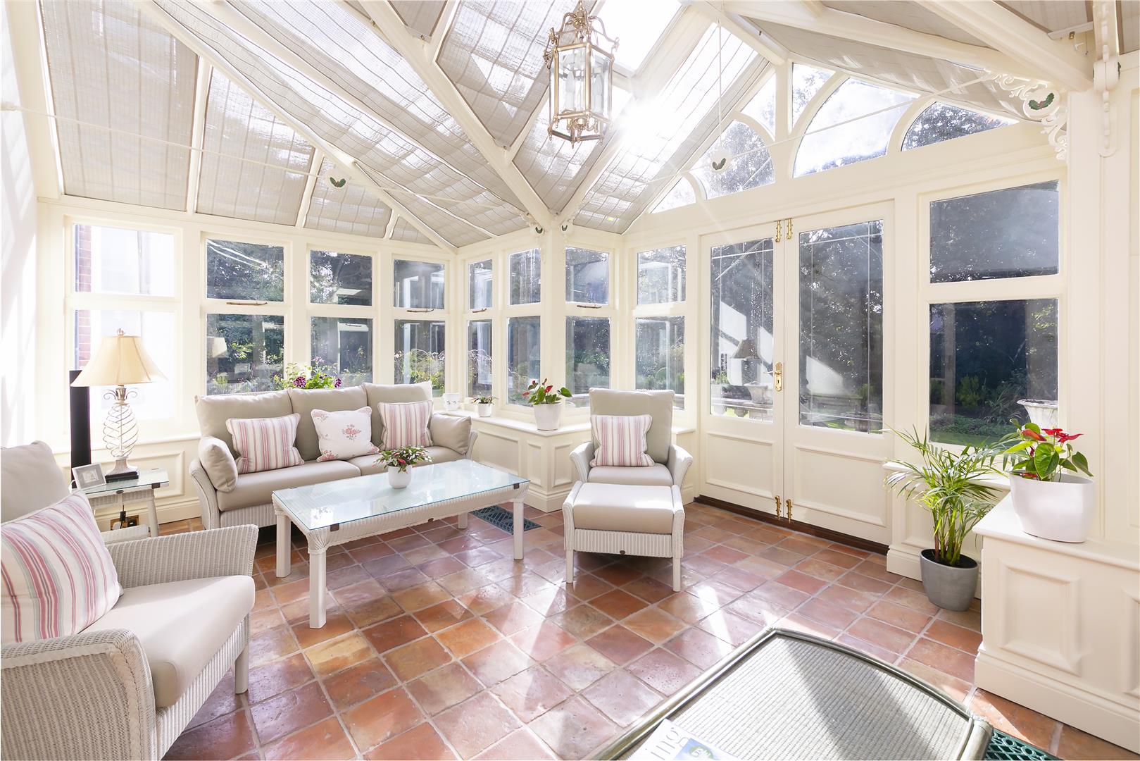 Conservatory - 5.79m x 3.73m approx (19'0 x 12'3 approx) - Providing gorgeous views across the garden. A hardwood framed structure with inset double glazing and double doors leading out to the west elevation. Quarry tiled flooring. There are electrically operated roof openers with blinds. There is also underfloor heating.