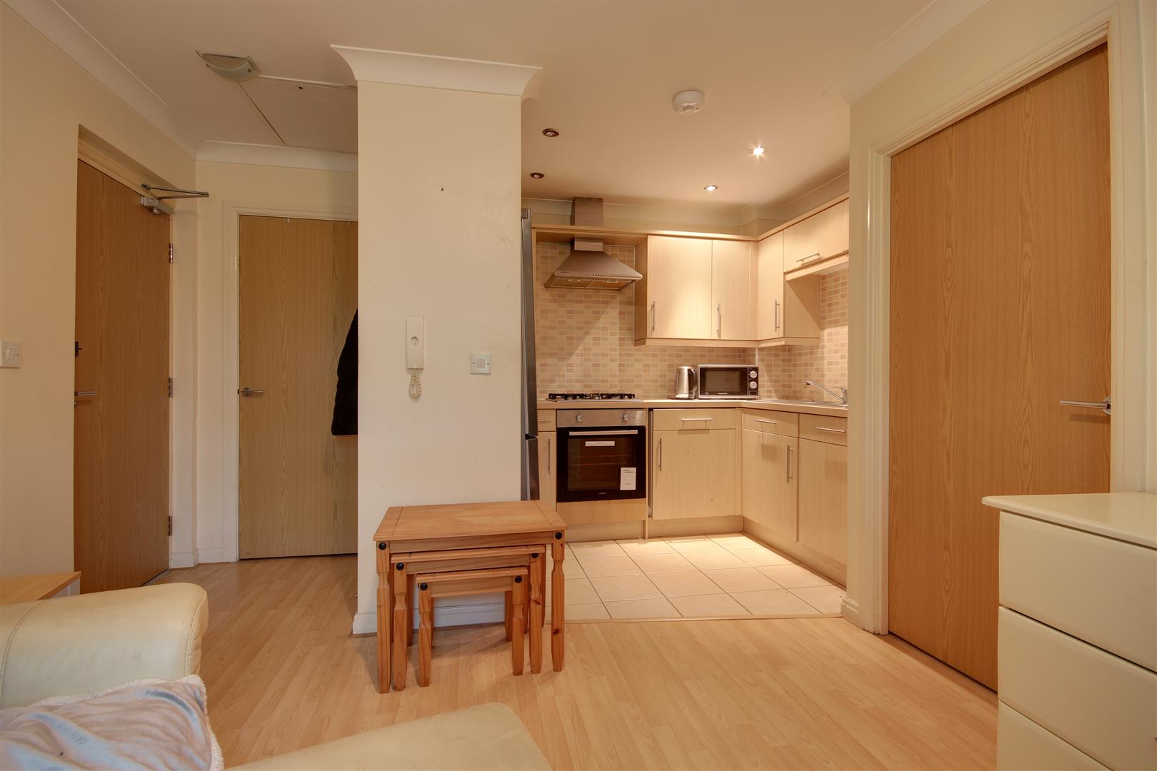 Kitchen Area - 2.77m x 1.83m approx (9'01" x 6'00" approx) - With a one-and-a-half sink & drainer atop fitted worksurfaces, washing machine and space for a large fridge-freezer. An integrated oven is fitted beneath a four-ring gas hob with extractor fan above. The space benefits from tiled flooring and surround.