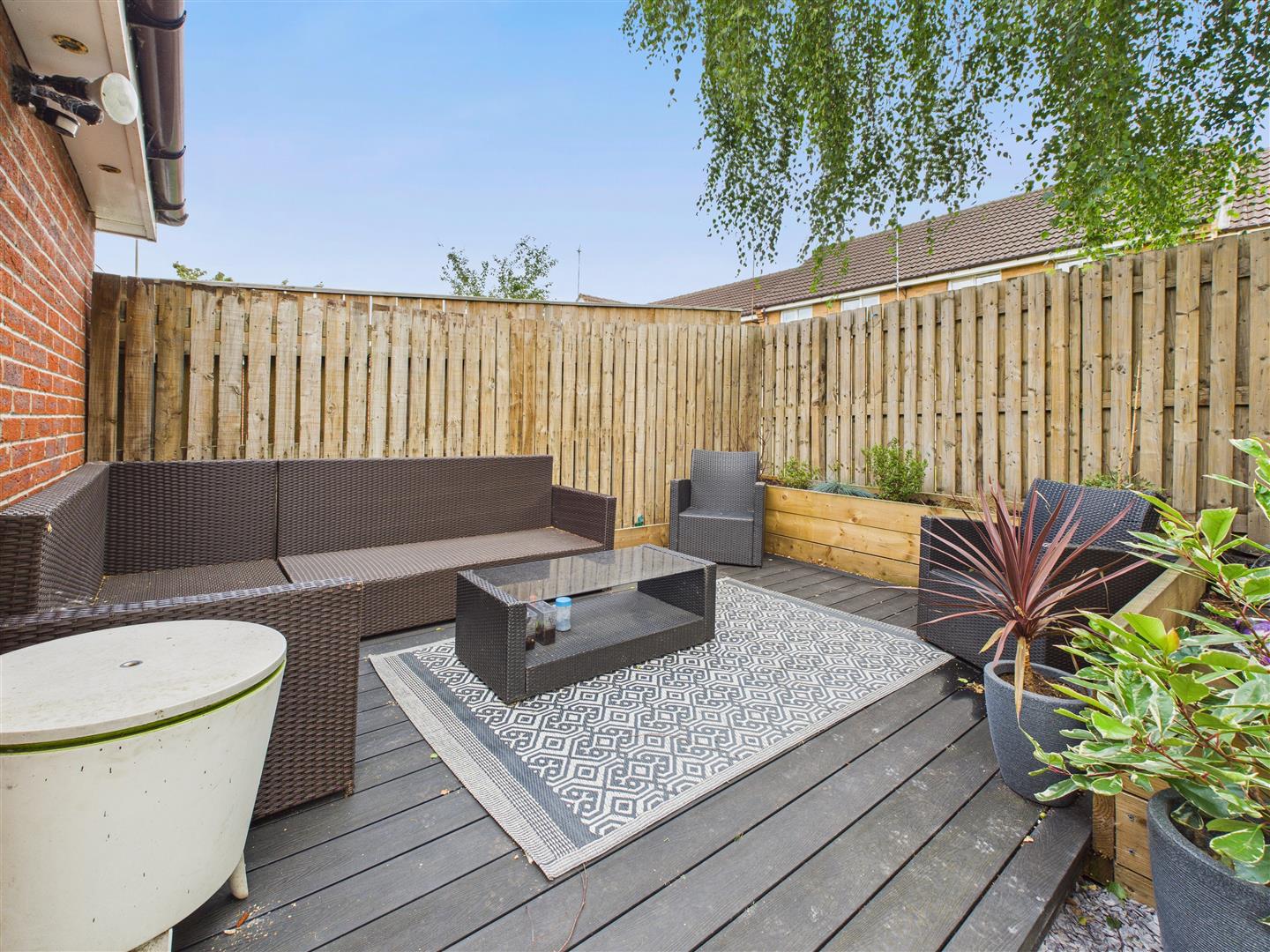 Outside - A lawned garden extends to the front and a good sized drive leads to the single garage. The rear garden is lawned with a decked patio to one corner and raised borders with railway sleeper retainers.