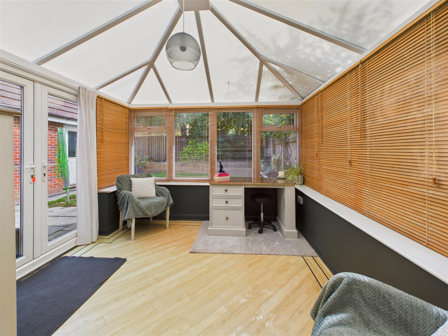 Dining Kitchen - This stunning room has a range of fitted base and wall mounted units with contrasting worksurfaces over, one and a half sink and drainer unit, integrated appliances including a double oven, four ring hob with extractor over, fridge/freezer, dishwasher and plumbing for a washing machine. Tiled surround to units, Karndean flooring. Window to rear and an opening through to the conservatory.