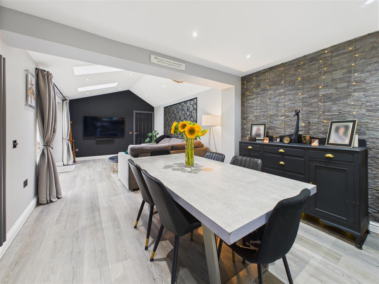 Introduction - This stunning contemporary detached house has been remodelled and significantly extended to create a fabulous family home offering all the luxuries of modern living. The layout is depicted on the attached floorplan which briefly comprises a central hallway, superb fitted kitchen which is open plan in style through to a dining and living area with vaulted ceiling. There is a separate sitting room and a study/bedroom 5. Features also include a well fitted utility room, cloaks/W.C.. and store room. Upon the first floor are a series of four bedrooms, 2 with en-suite facilities and a separate bathroom. The accommodation has the benefit of gas fired central heating, underfloor heating and uPVC framed double glazing. Outside mature hedging to the front provides privacy and a side drive affords parking in front of the store garage. The rear garden is a particular feature having been attractively landscaped and set out for ease of maintenance with a contemporary feel having artificial grass, raised borders and paved patio.