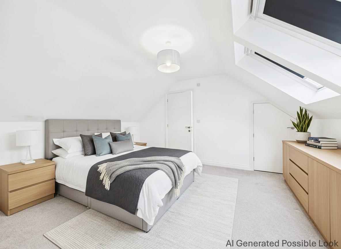 Bedroom 3 - An attractive room with two velux windows, store cupboard to corner which also houses a gas fired central heating boiler.
