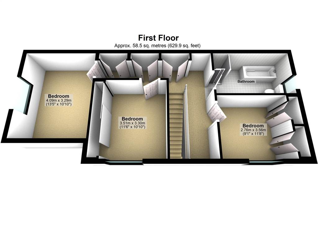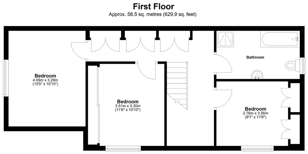 - Three bedrooms (two with fitted wardrobes)