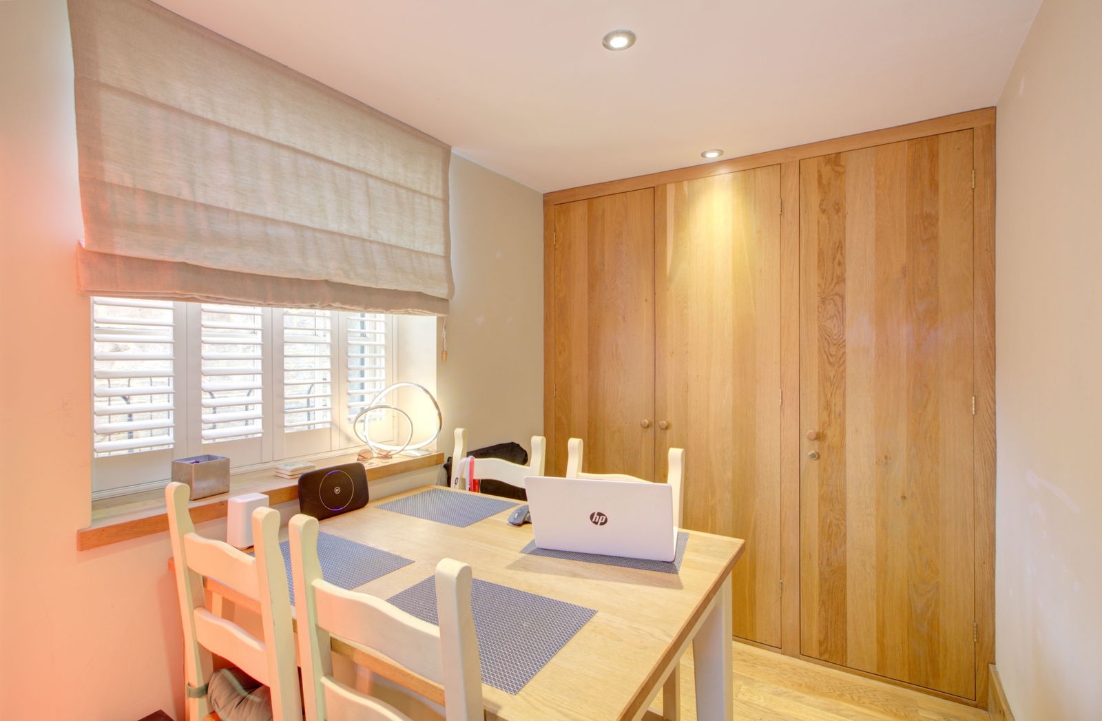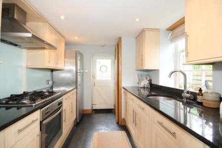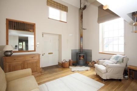 As you enter the property you are greeted by the sitting room which measures an impressive 14’ 5” x 12’ 7”. The sitting room is full of character with a double-height ceiling and wooden trusses as well as a working wood burner which helps create a cosy feel during the evening and winter months. The sitting room benefits from a triple aspect with large sash windows which allow plenty of light to flood the property throughout the day. Beyond the sitting room is a formal dining area with space for a freestanding table and the further benefit of built-in storage cupboards. To complete the first floor, the kitchen is positioned at the rear of the property (with access to the garden) and comprises of fully fitted wall and base units with a mixture of integrated and freestanding appliances, as well as granite worktops providing ample workspace.