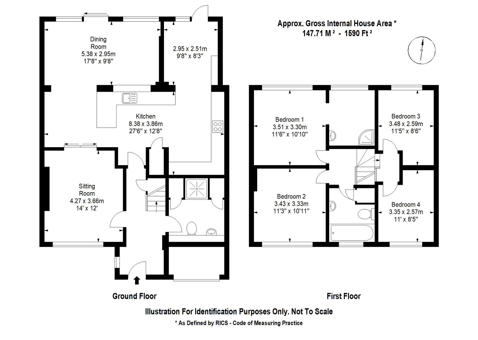 Stairs to the first floor give access to four double bedrooms and the family bathroom. The master bedroom overlooks the rear garden and benefits from a spacious ensuite shower room which doubles as a dressing room. A further three bedrooms all provide space for a double bed and freestanding wardrobes. To complete the first floor, the family bathroom comprises of a modern neutral suite with large bath.
