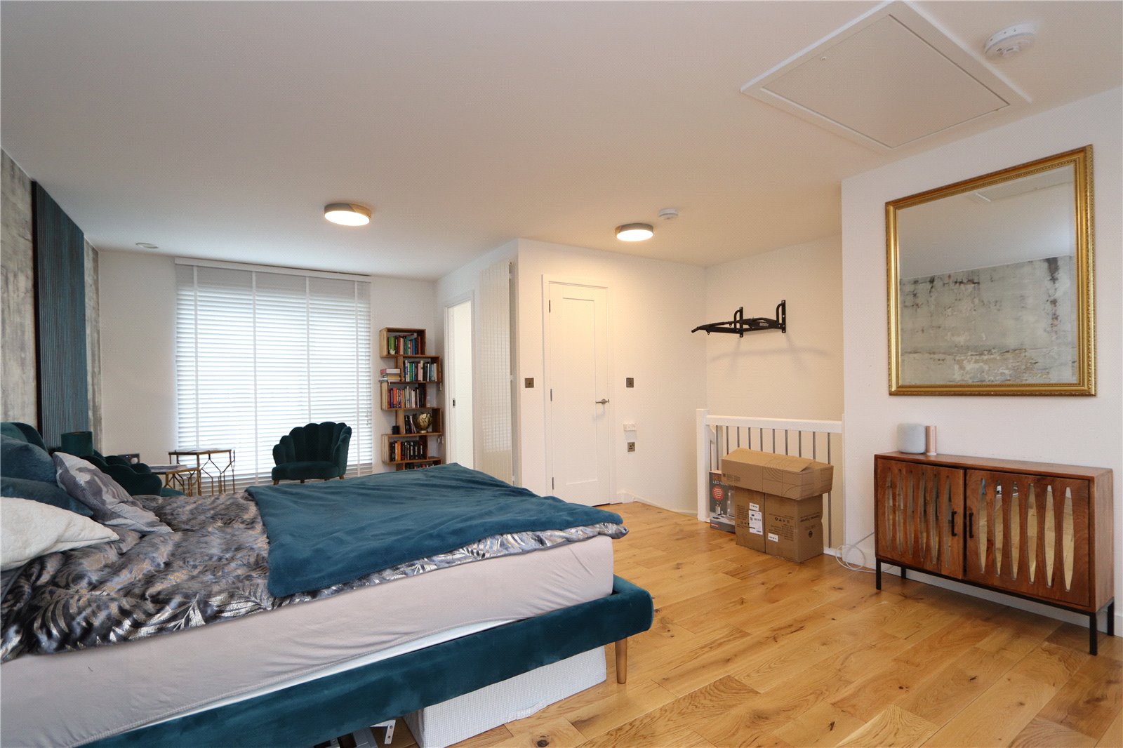The top floor is home to the impressive primary bedroom, a serene and spacious retreat with dual-aspect windows that bathe the room in light. This room includes a built-in storage cupboard and an en-suite bathroom, offering privacy and convenience.