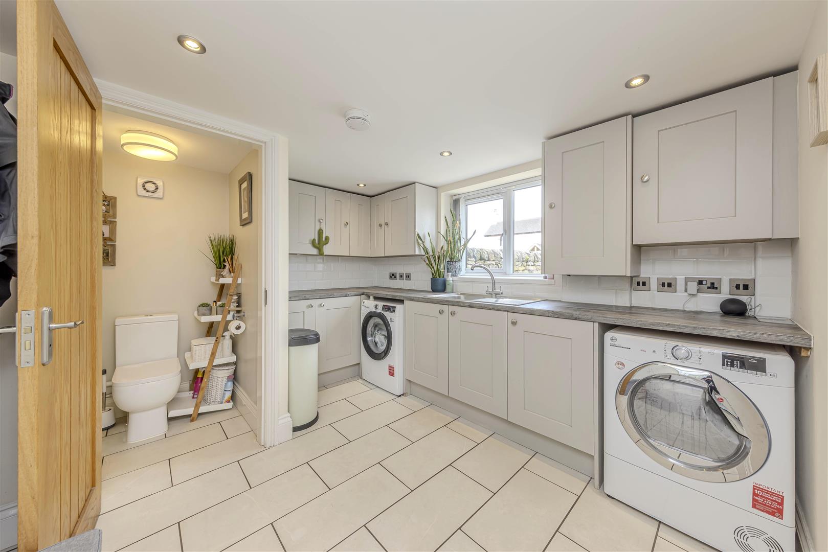 Utility - 3.41 x 2.85 max (11'2" x 9'4" max ) - Tiled flooring. Wall mounted radiator. Range of wall and base units. Plumbing for washing machine. Drainer style sink unit. UPVC double glazed window to the front aspect. Access to sunroom. Access to WC. Inset spotlights.