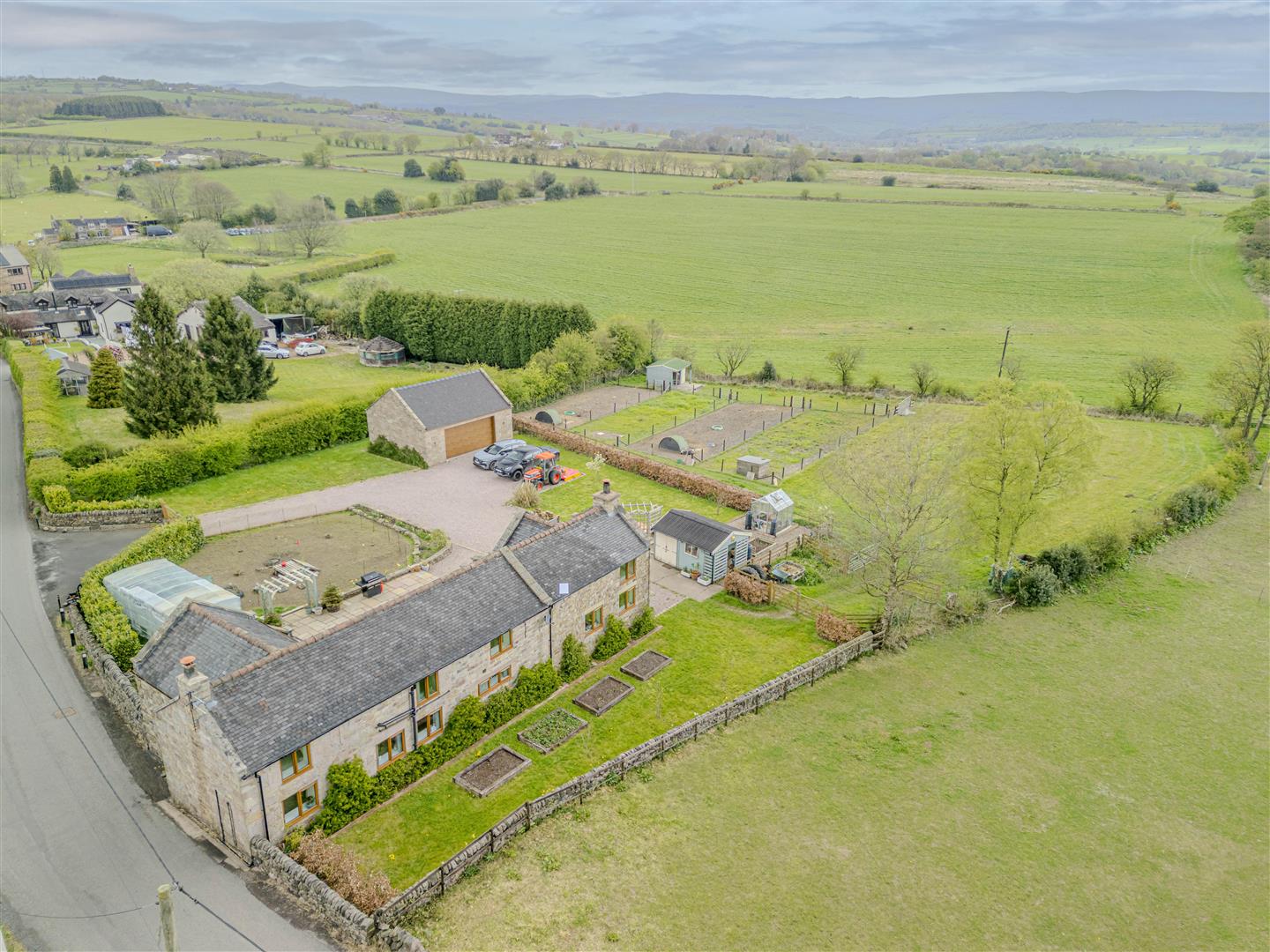 This impressive four-bedroom detached farmhouse occupies a spacious plot with two paddocks extending to approx 1.1 acres. With impressive views over the surrounding countryside, spacious accommodation, and endless opportunities, this outstanding home offers a rare chance to acquire an outstanding peaceful countryside retreat.