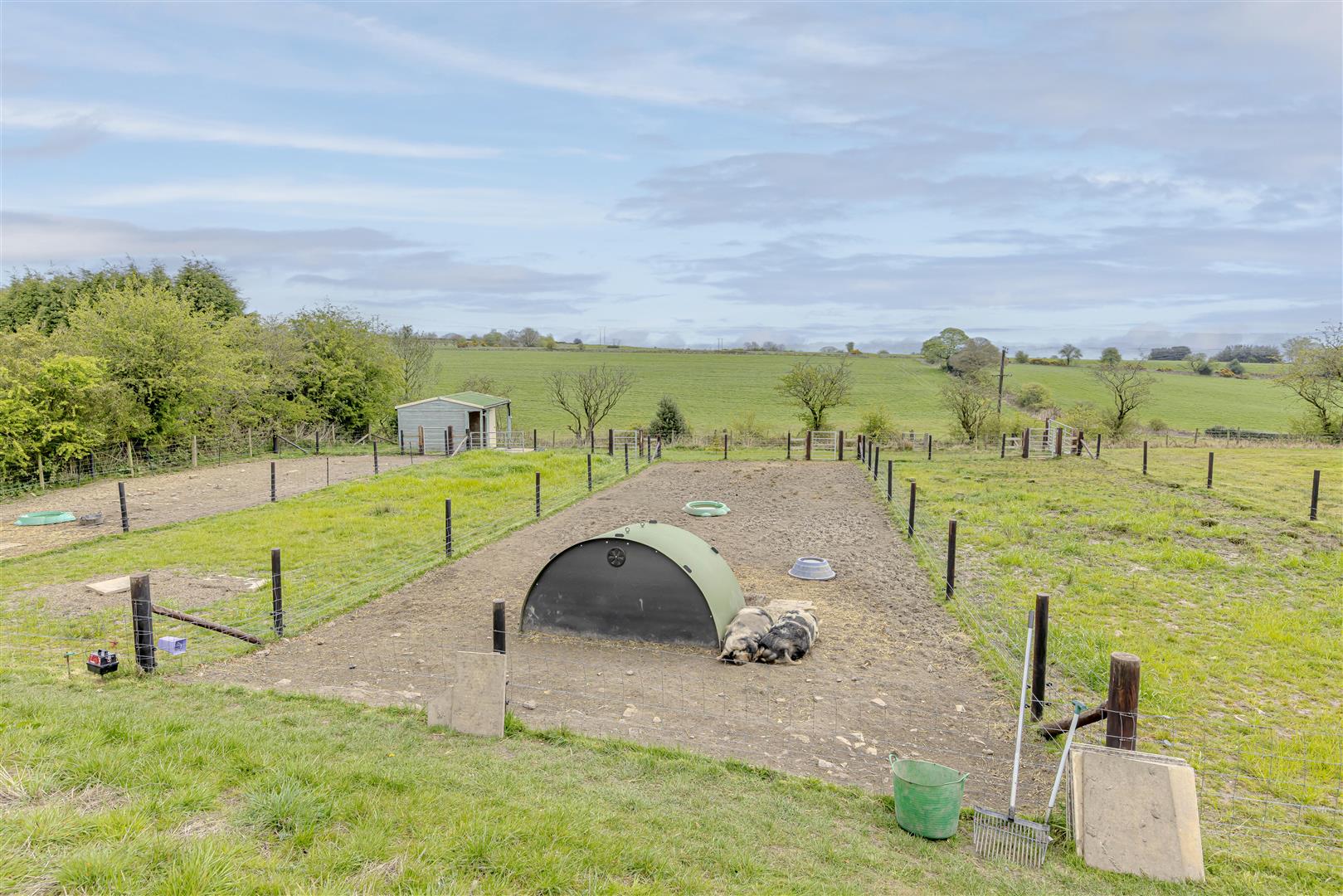 The beautifully landscaped gardens include expansive lawns, a large chicken coop, and raised beds for growing fruit and vegetables. Two well-maintained paddocks offer additional flexibility, one of which is currently home to pigs, making this an ideal choice for hobby farmers or those looking to embrace a self-sufficient lifestyle.