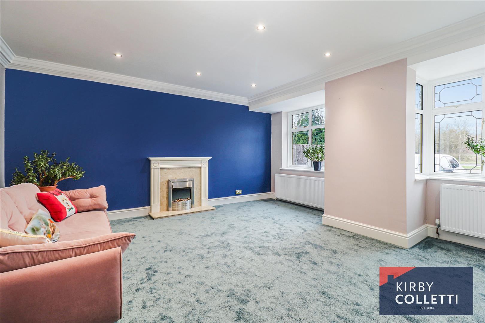 Lounge - 5.00m x 5.13m into bay (16'5 x 16'10 into bay ) - Two front aspect leaded light double glazed windows. Radiator. Feature fireplace. Coved ceiling. Recessed spotlights.