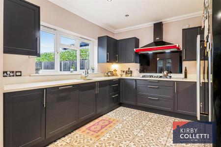 Re-Fitted Kitchen - 3.30m x 3.10m (10'10 x 10'2) - Rear aspect uPVC double glazed window. Range of wall and base mounted units. Worksurfaces over. Under mounted sink mixer tap over. Built in gas five ring hob. Extractor hood over. Built in oven. Integrated dishwasher. Space for fridge/freezer. Column radiator.