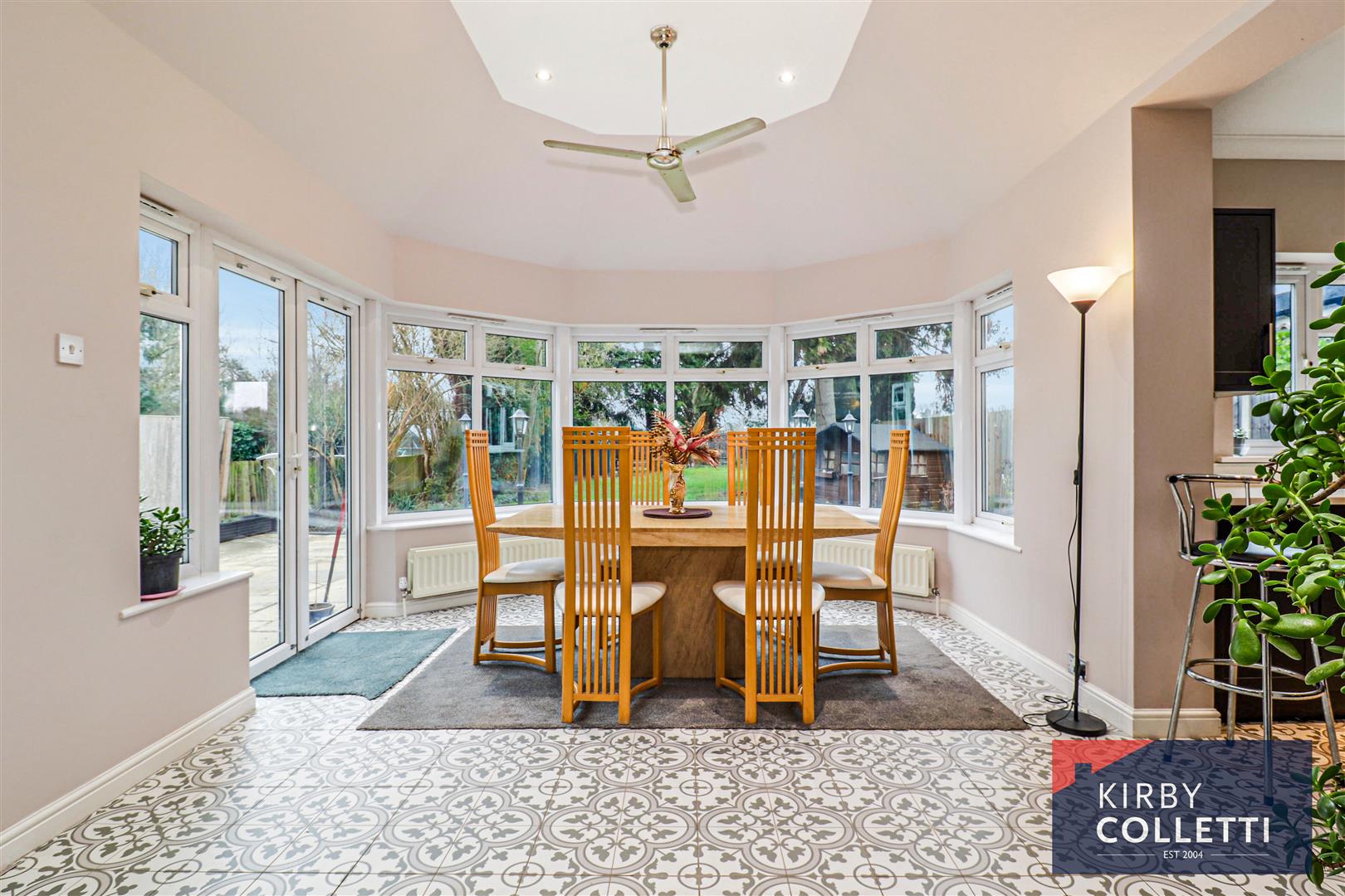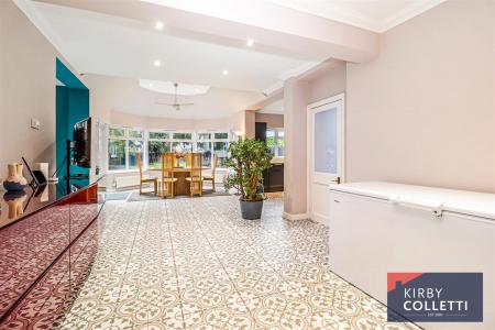 Family Room - 8.92m x 3.43m (29'3 x 11'3) - Three sided uPVC double glazed bay window and separate windows to either side. uPVC double glazed door to rear garden. Recessed ceiling spotlights. Coved ceiling. Sky light. Radiators. Tiled flooring. Access to