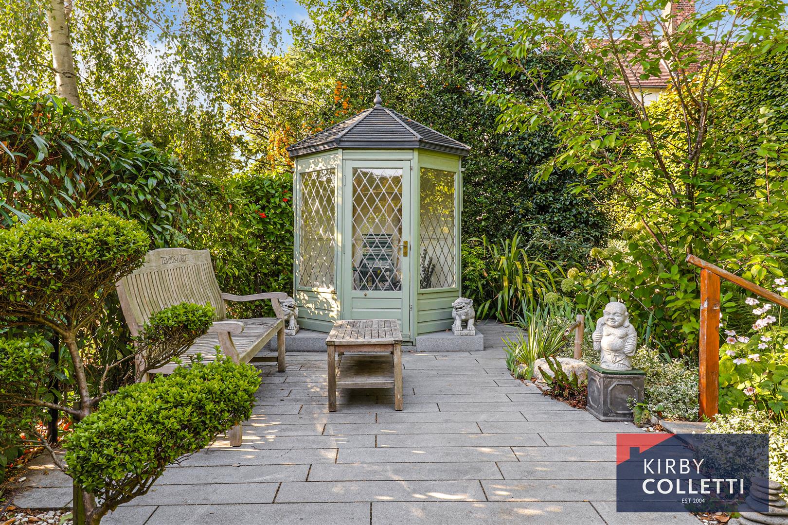 Rear Garden - This is a particular feature of the property with garden to the side and rear. Lawned areas and mature shrubs borders. Block paved patio area leading to rear of double detached garage. Garden shed and summer house.