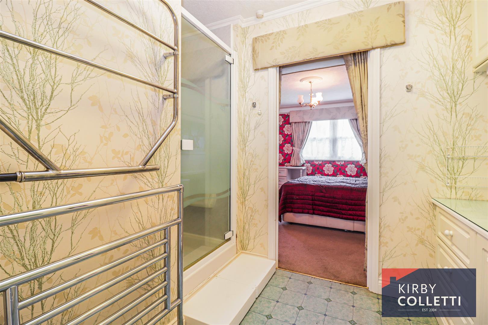 En Suite Bath/Shower Room - 3.73m x 2.34m (12'3 x 7'8) - Front aspect uPVC double glazed window. White suite comprising panel enclosed bath mixer tap and shower attachment over. Wash hand basin. Low level W.C. Shower cubicle. Two heated towel rails.