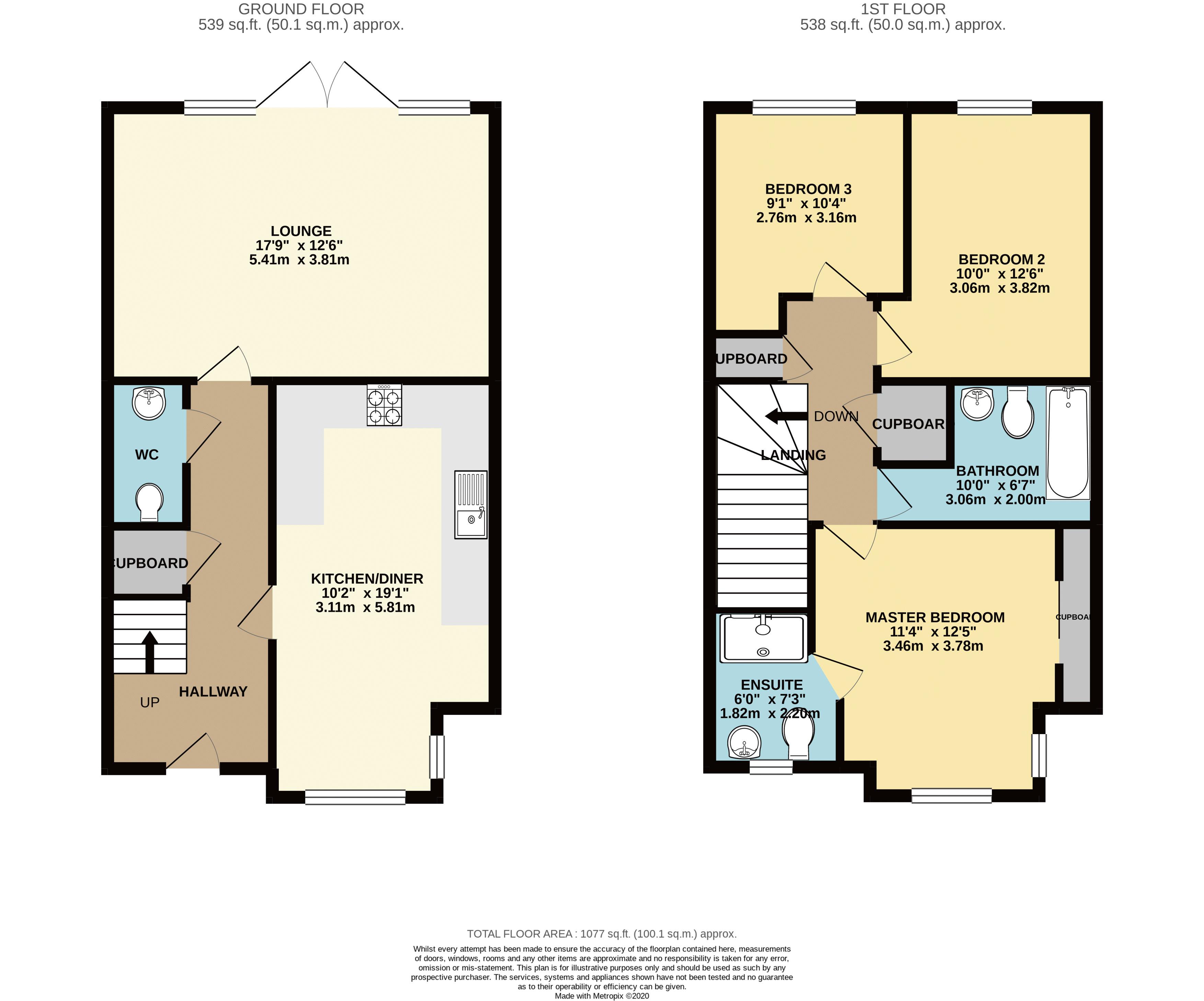 The property is configured over two floors and comprises; a larger than average entrance hallway, fitted guest cloakroom, spacious 19ft kitchen/diner with fitted appliances and a light and airy lounge. To the first floor there is a modern family bathroom and three generous sized and well proportioned bedrooms with an en-suite to the master. Externally the property boasts a well maintained easy to manage rear garden including paved patio and lawn. There is secured rear gate leading to the car park where there is two allocated parking spaces. To the front there is ample visitor bays.