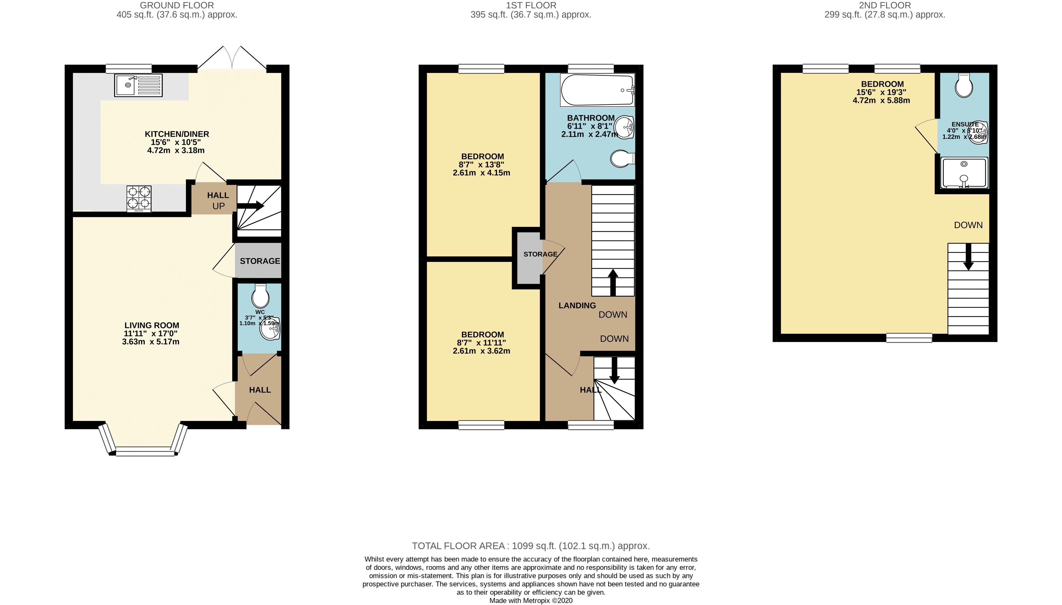 Brief internal accommodation comprises, an entrance hall, guest cloakroom, bay front living room and a comprehensive kitchen/diner. To the first floor ther is a large and modern family bathroom, storage cupboard and two double bedrooms. To the second floor there is the dual aspect 19ft master bedroom complete with its own en-suite. Externally the property boasts a private rear garden laid with lawn and patio and allocated parking for two vehicles.