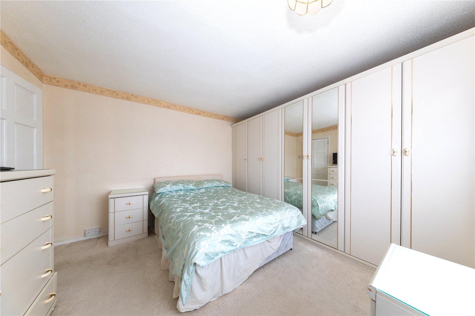 To the first floor, the property offers three bedrooms. Bedroom One is a comfortable double room benefiting from built-in wardrobe storage. Bedroom Two is also a good-sized double, while Bedroom Three is a single room with space for additonal furnishing.