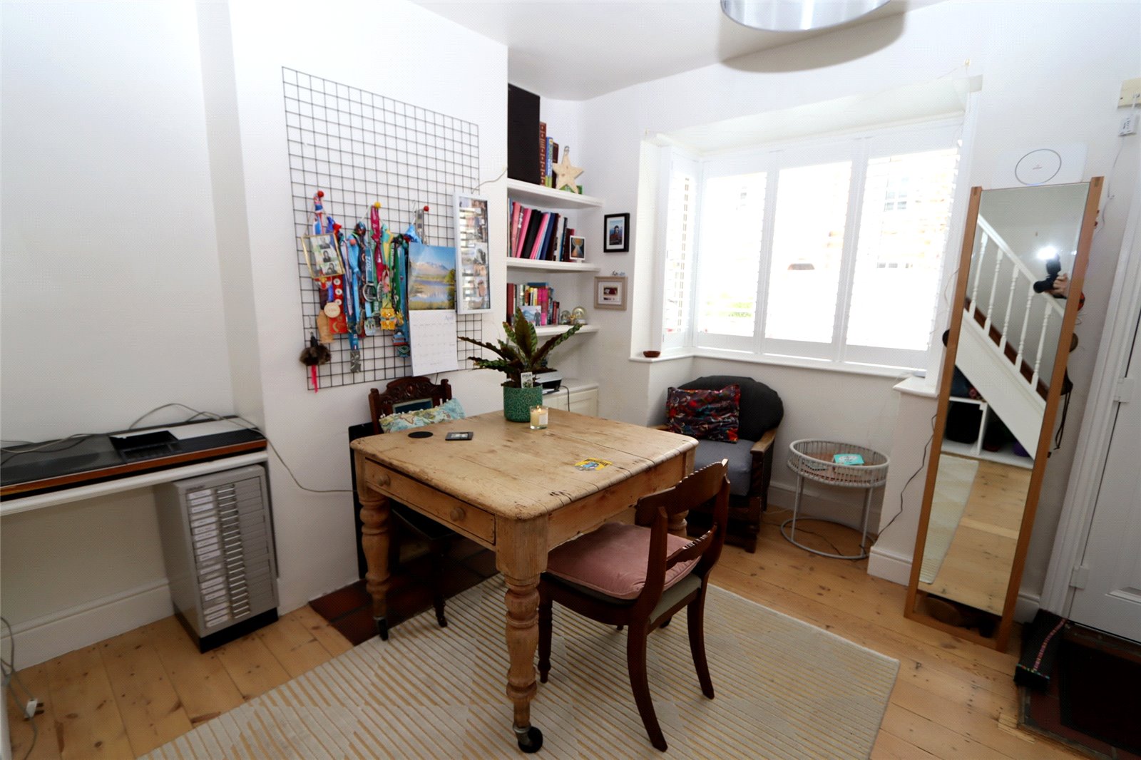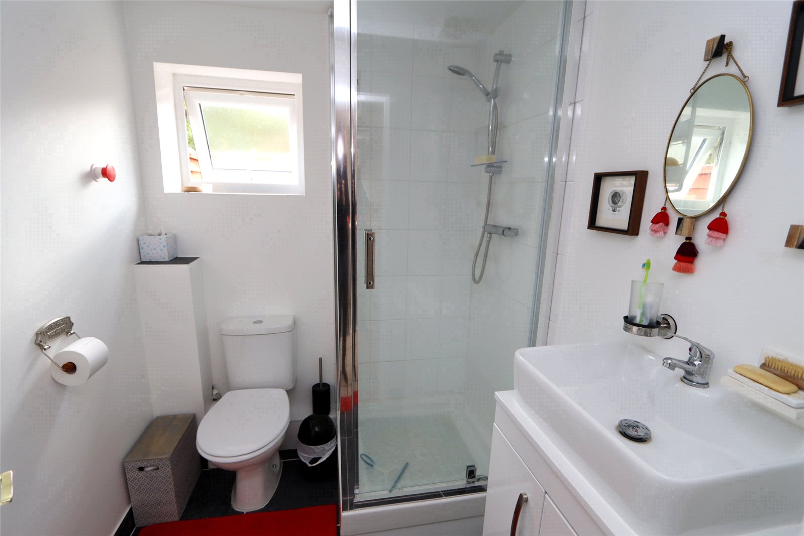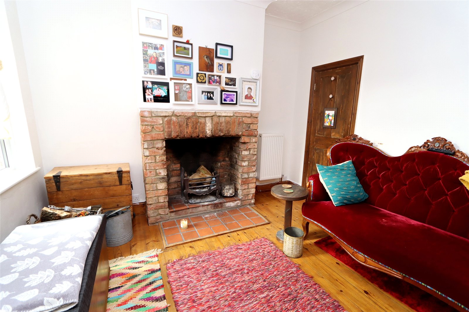 The home opens into a welcoming reception room currently being purposed as a dining room. The room feature a fireplace and understairs space for storage. To the rear is a separate reception room, being purposed as a lounge with an open fireplace. The room also benefits from further under-stairs storage. The kitchen is fitted with a Belfast sink and space for a oven/hob and washing machine. The kitchen also houses the boiler. Off the kitchen is a brief lobby with access to the garden as well as an extended shower room, including a full shower, toilet and sink.