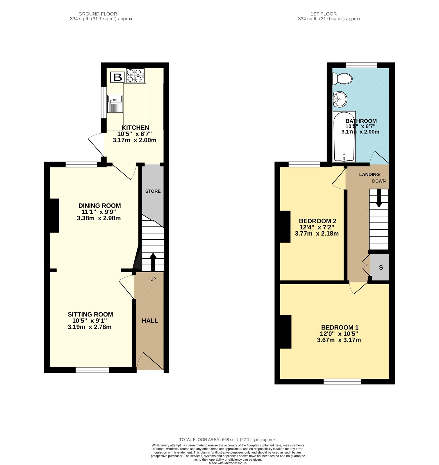 Upstairs, the first floor features two generously sized double bedrooms, both offering ample space for wardrobes and furnishings. Completing the first floor is the family bathroom, along with a landing providing access to all rooms and an additional storage cupboard.