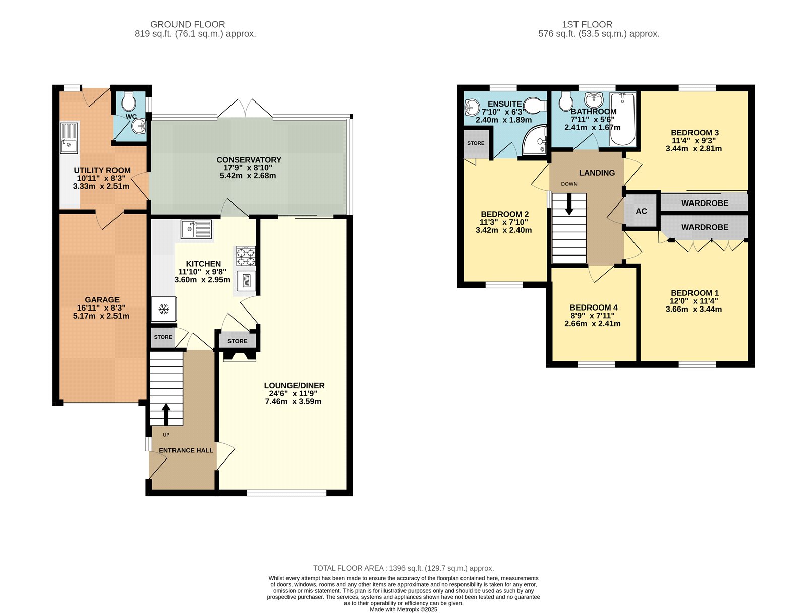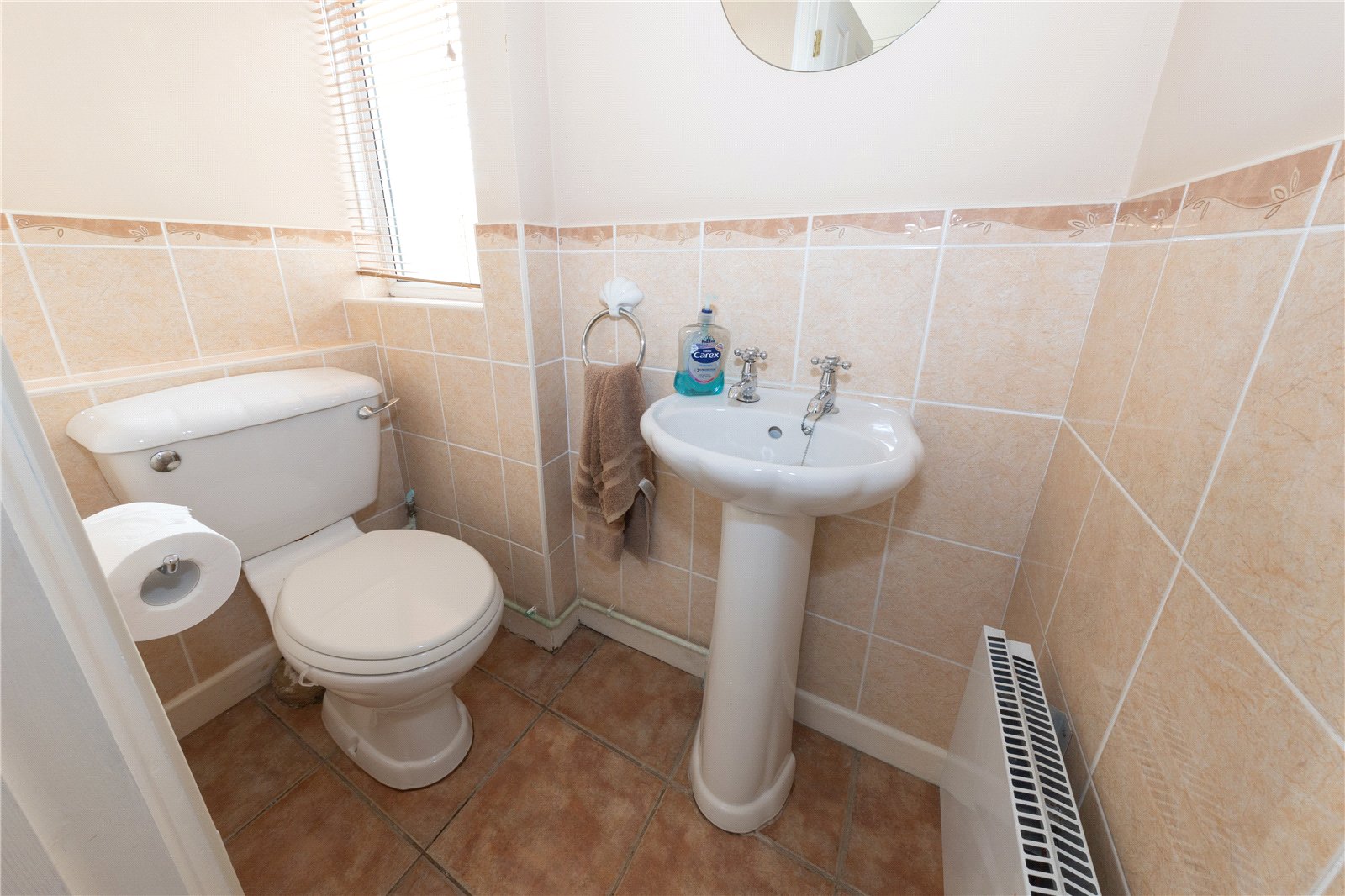 To the first floor, the property offers four well-proportioned bedrooms. The master bedroom benefits from fitted wardrobes and a private en-suite shower room. Bedrooms two and three are generous doubles with fitted wardrobe space maximising storage, while bedroom four is a well-sized single, ideal for use as a study, nursery, or guest room. Off the large landing is the family bathroom, complete with a shower over the bath, toilet and sink.