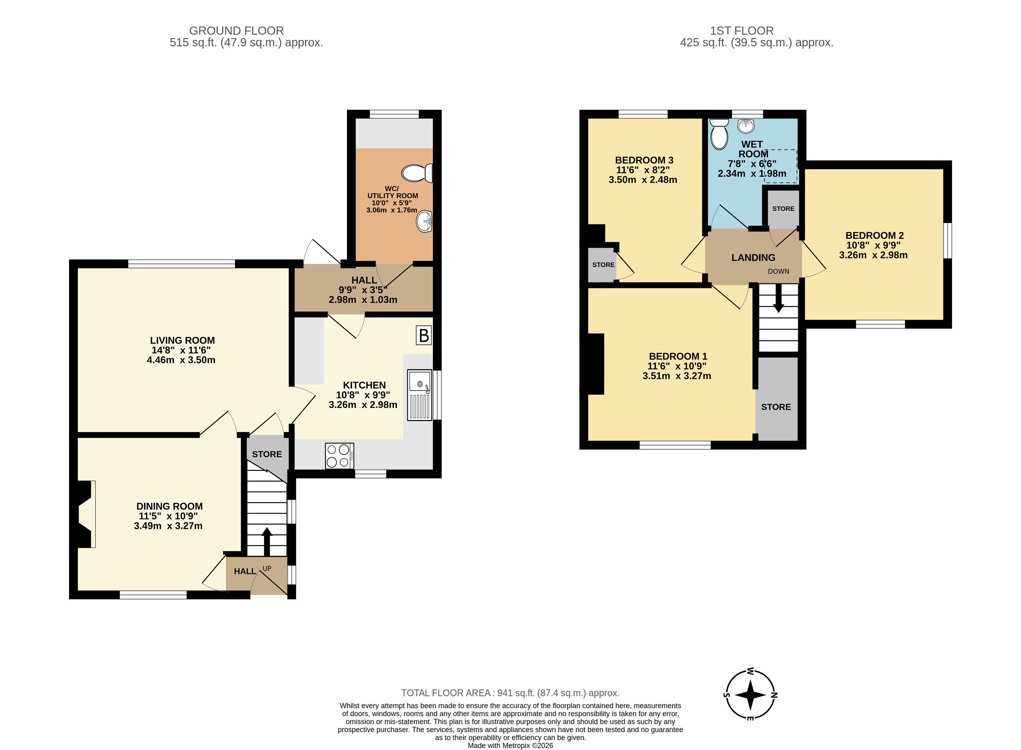 The sitting room offers a versatile space for family space and entertaining, with easy access through to the kitchen. The kitchen is well-proportioned, providing a range of storage and worktop space including a fitted oven and hob. The Kitchen leads through to a useful utility/WC, with space for both a washing machine and dryer. This space adds to the practicality of the ground floor layout.