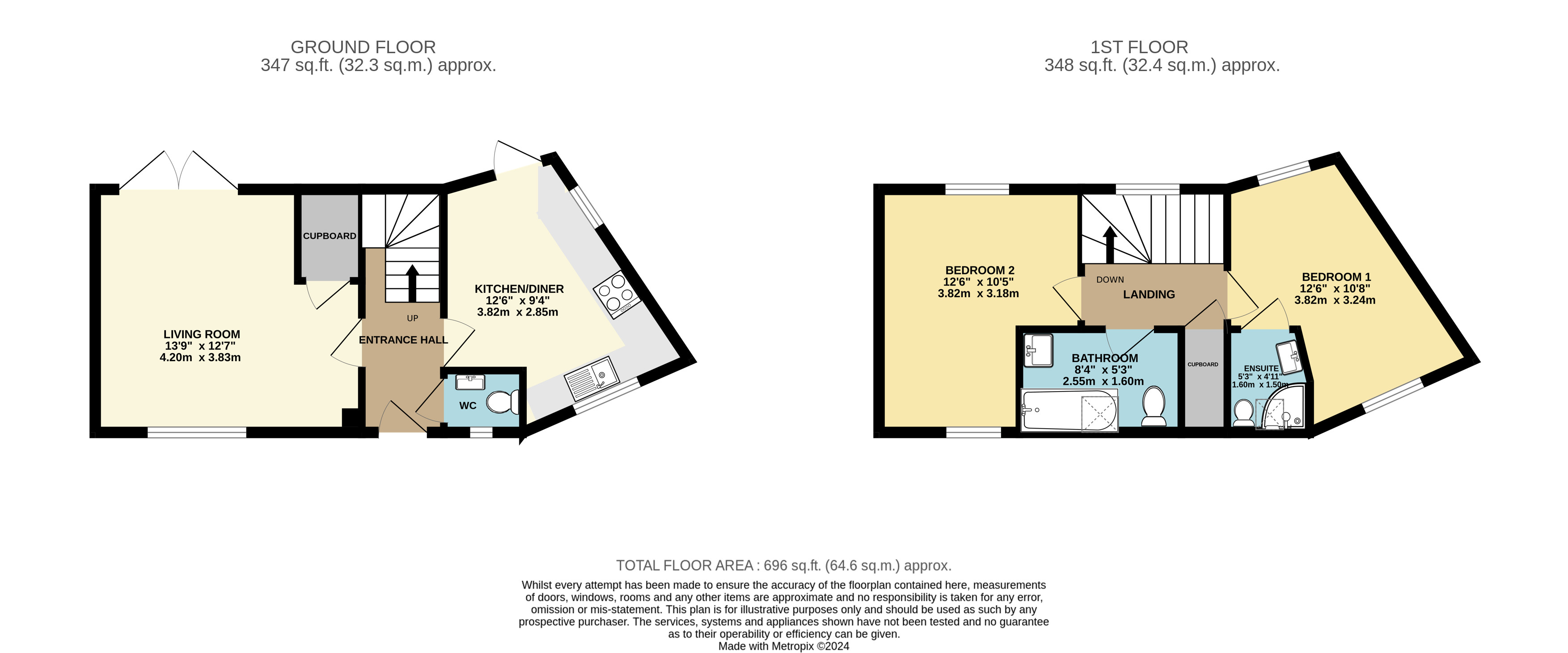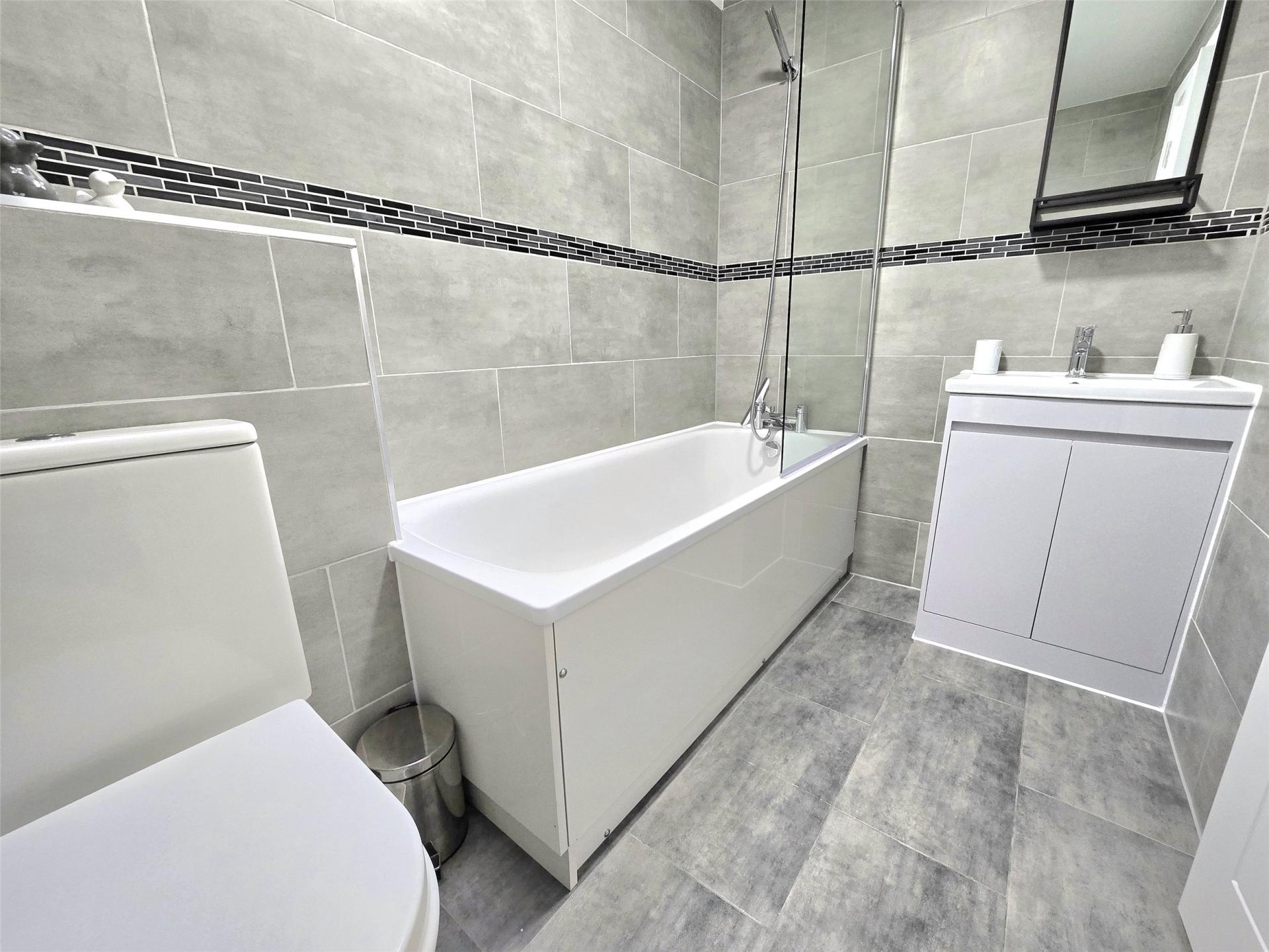 - Family Bathroom: Modern suite with shower over bath.