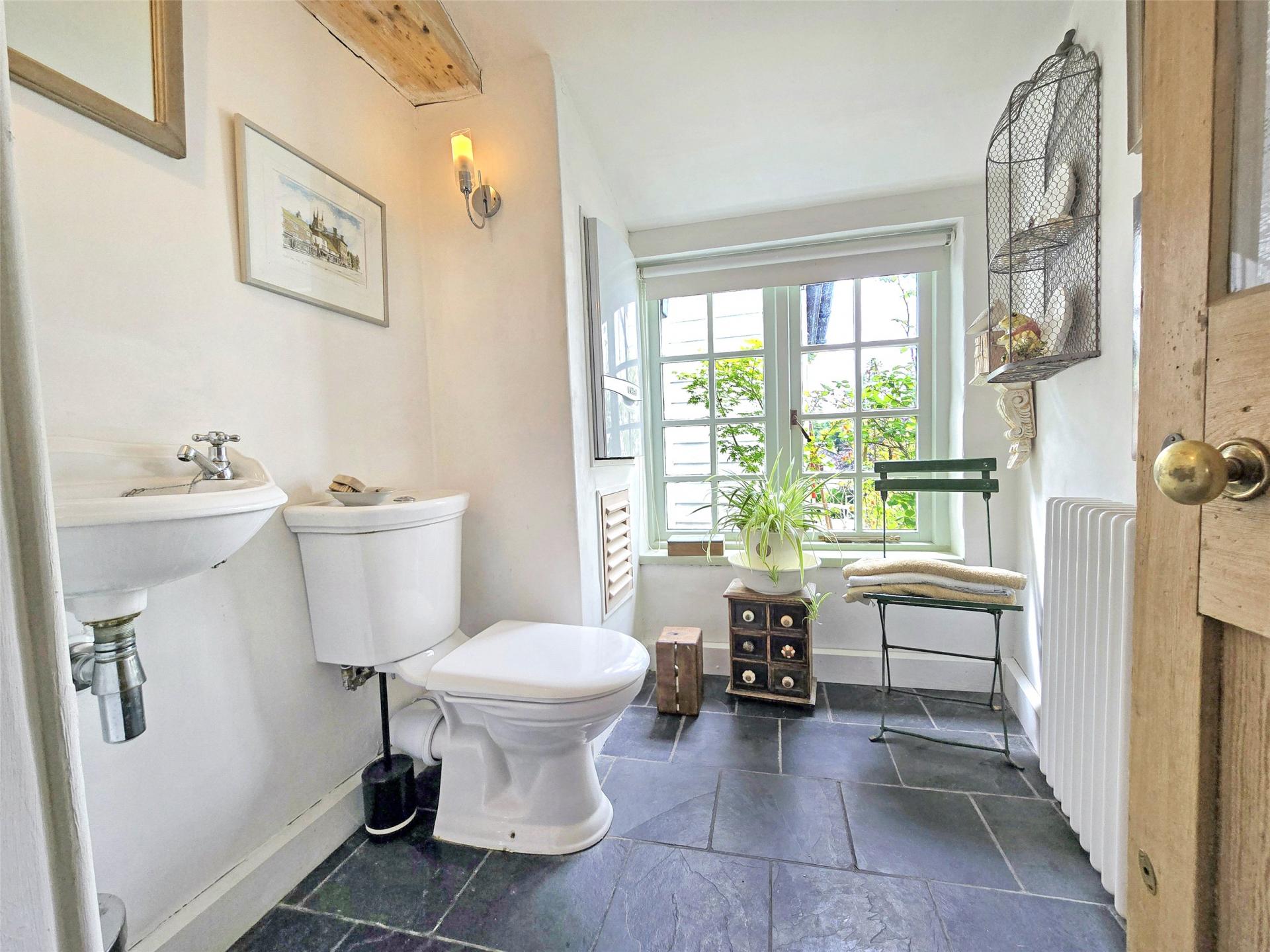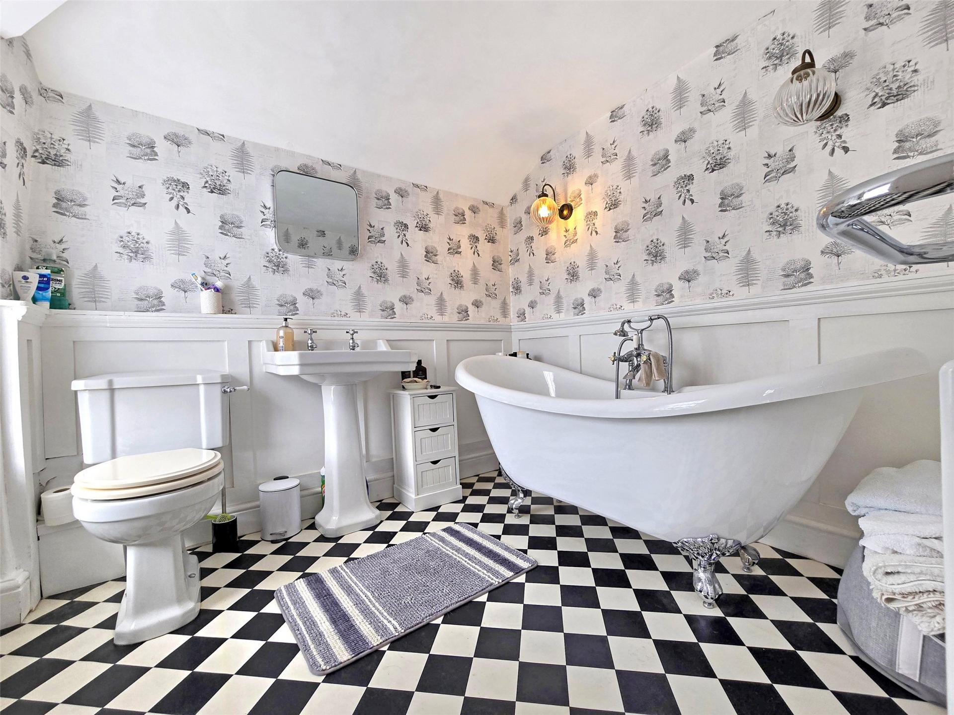 - Modern first floor shower room and stylish second floor bathroom with roll-top bath