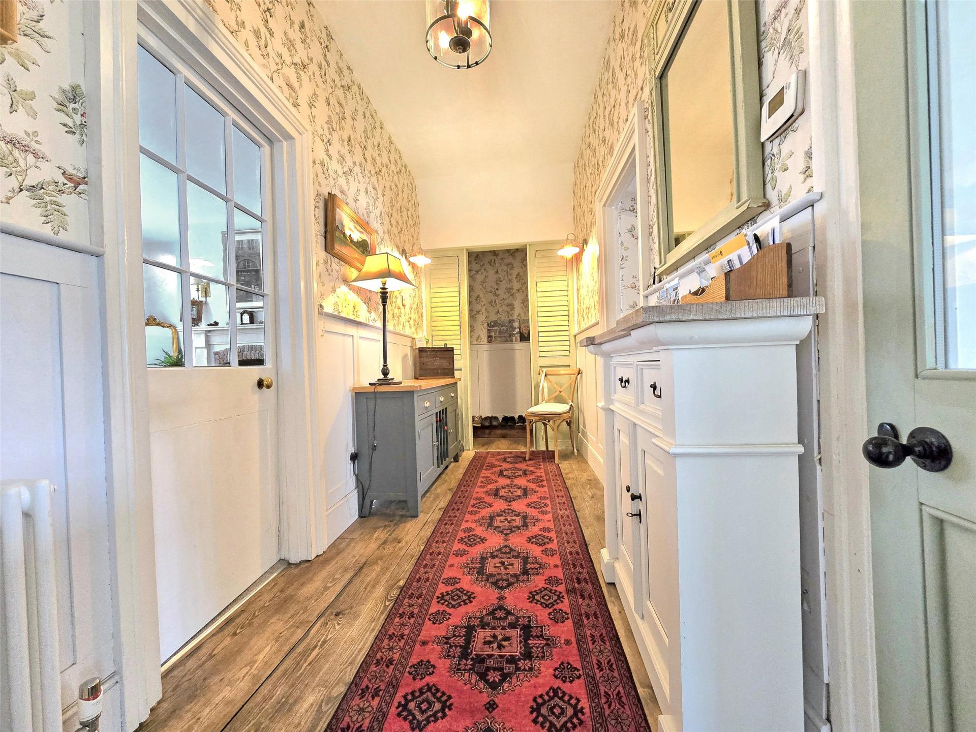 - Cottage-style kitchen with slate tiled flooring and adjacent utility porch