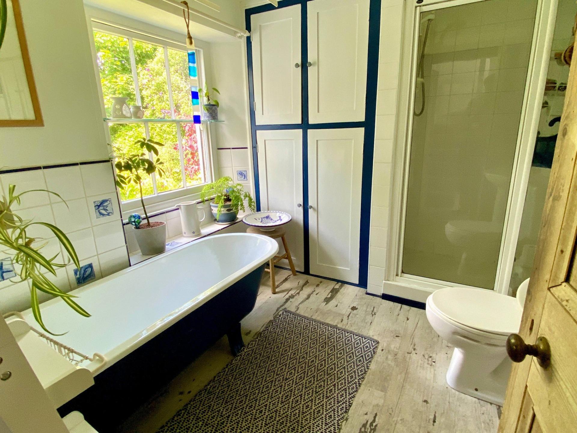 - Family bathroom with roll-top bath