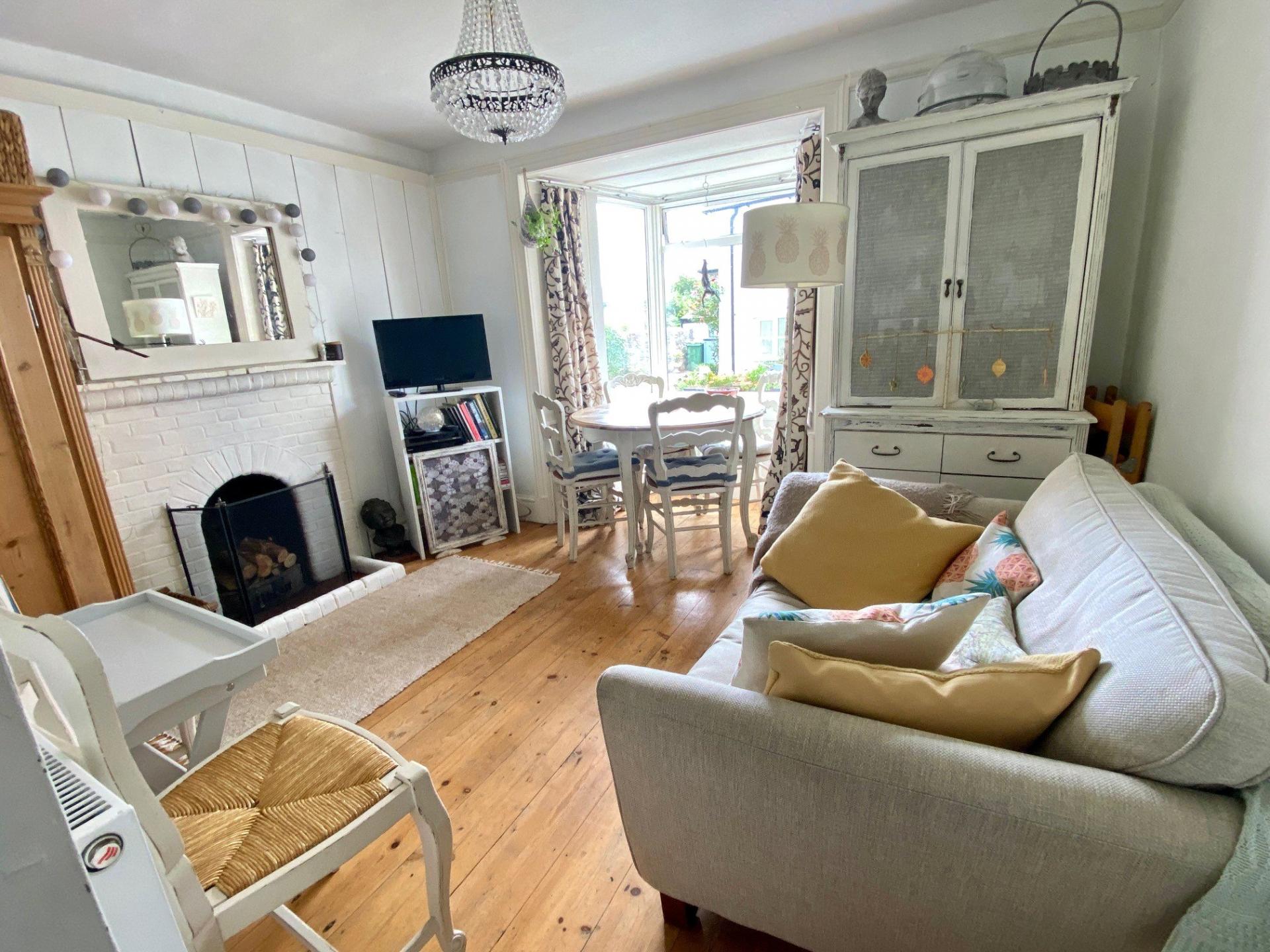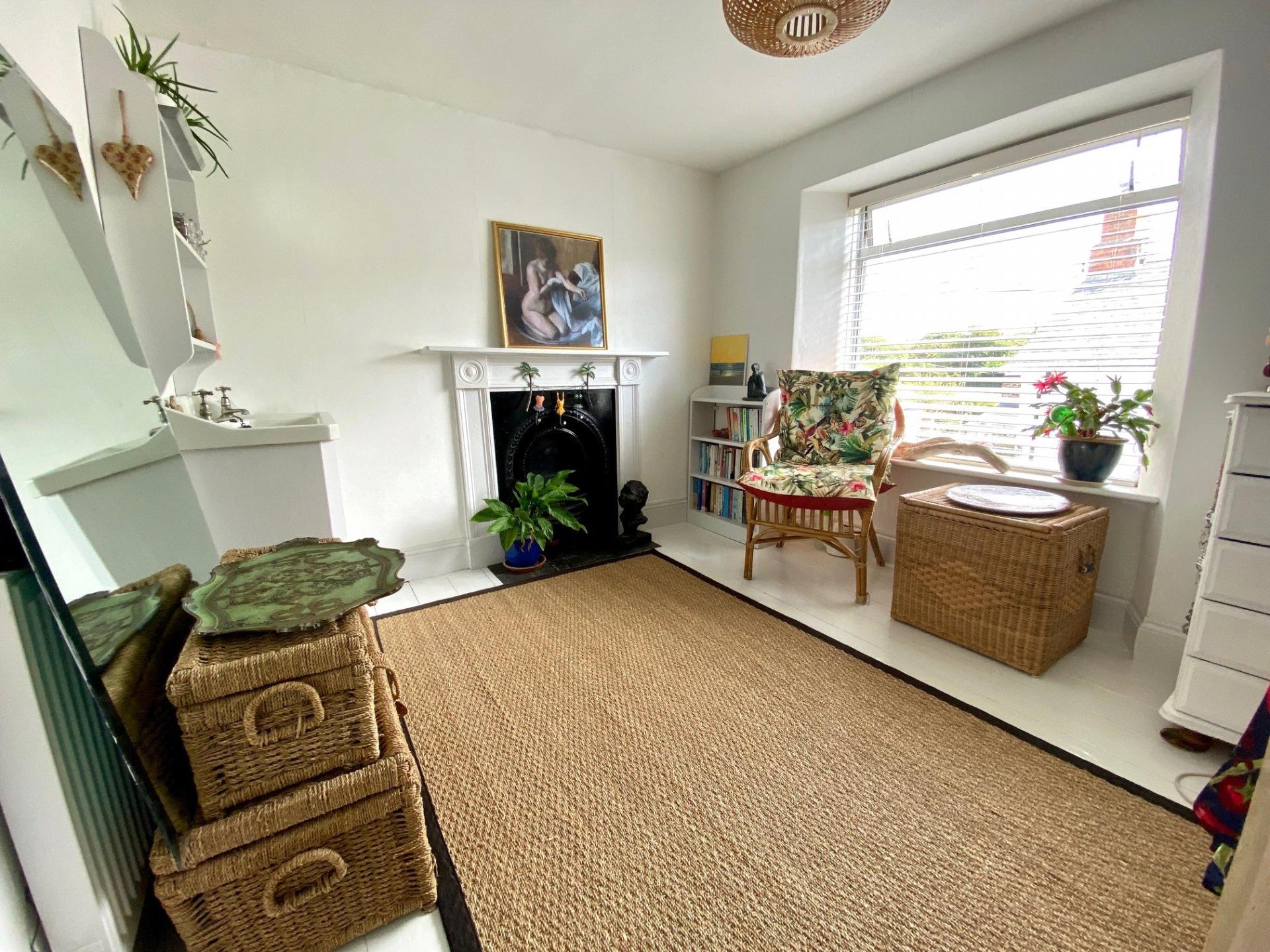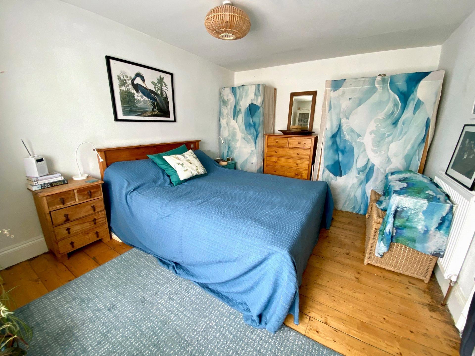 - Two first-floor bedrooms with feature fireplaces and exposed floorboards
