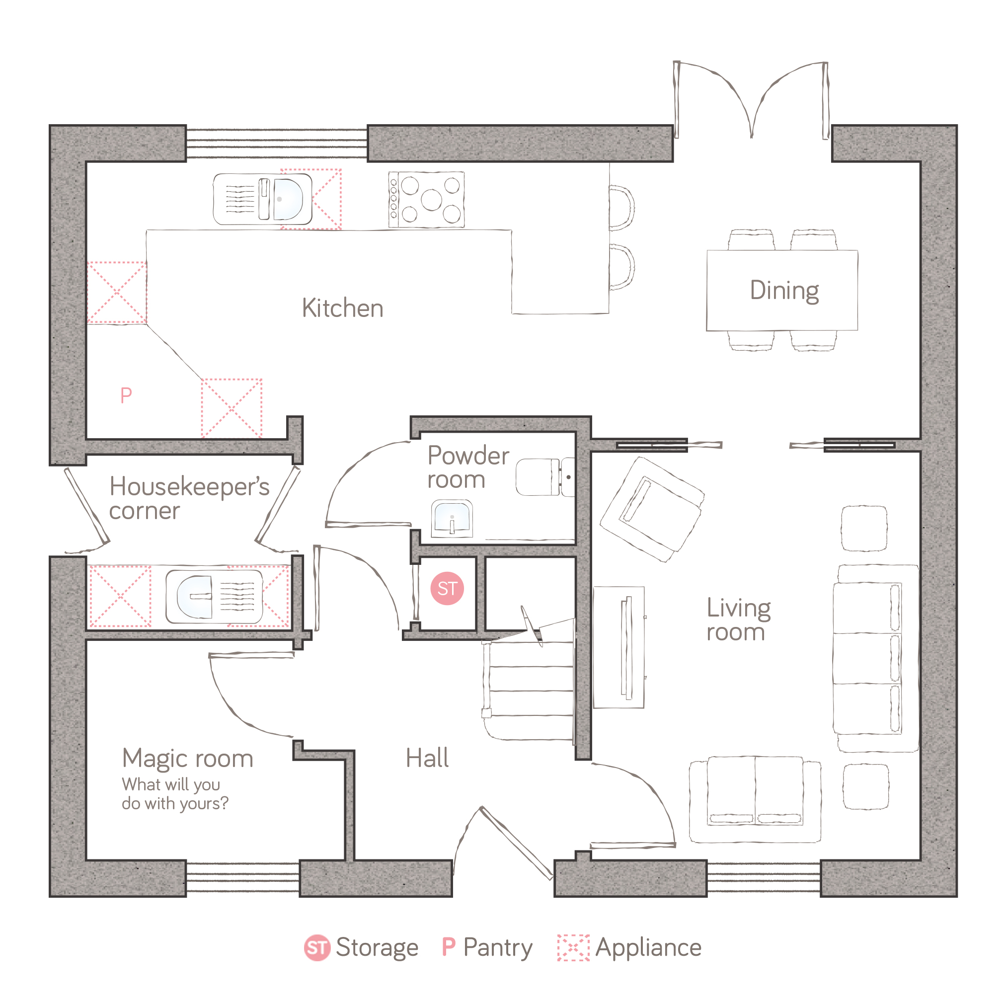 - Separate HOUSEKEEPER'S CORNER (utility room)