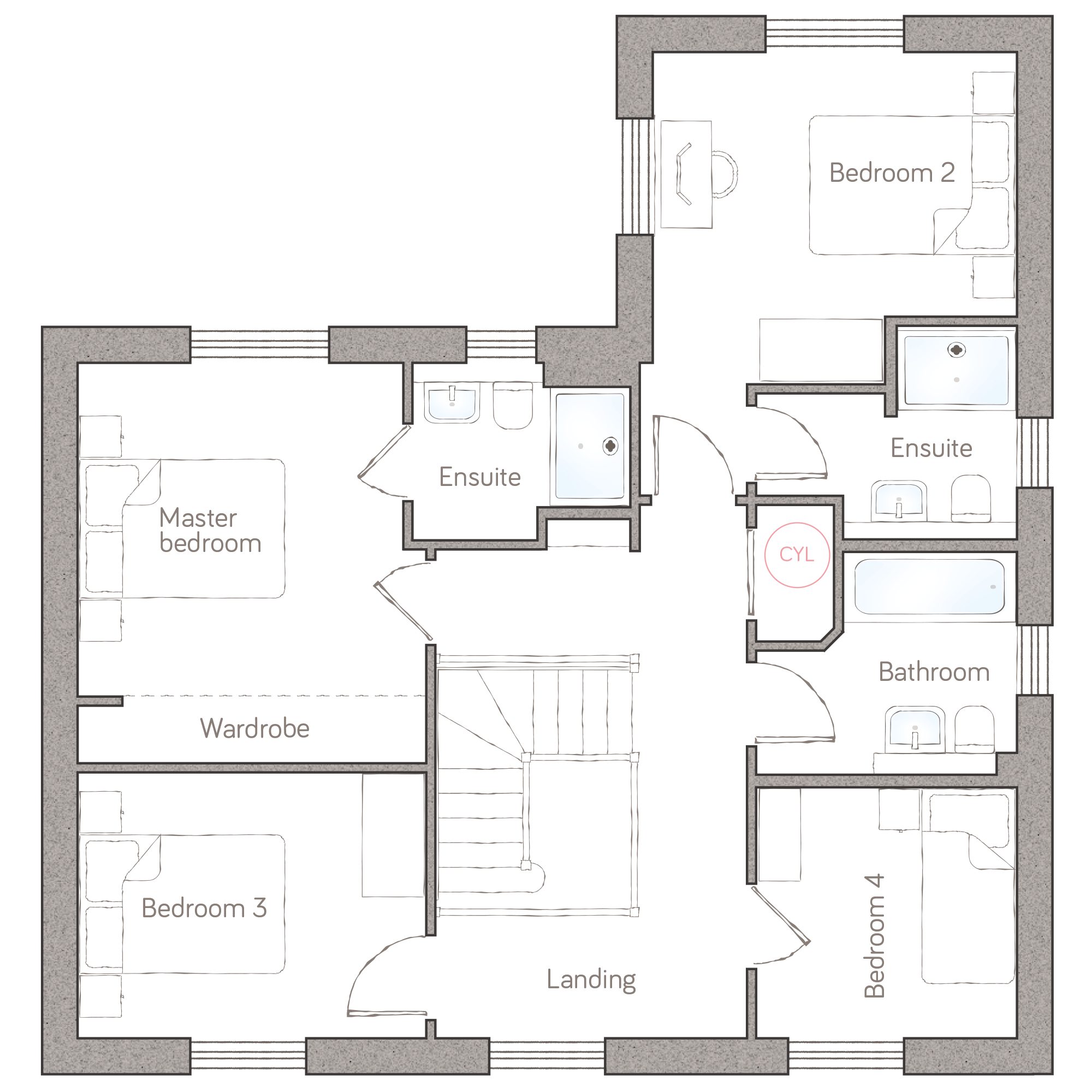 This grand, double-fronted home has so much adaptable space. Georgian-inspired with a classic Cornish stone frontage, large symmetrical windows of the era and an elegant hand-made porch, it captures the best of traditional home building injected with the essentials of modern-day living.