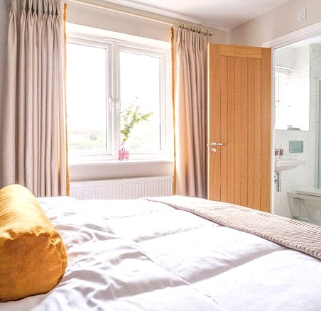 Solid-core doors made from A-grade American white oak veneer with brushed steel handles