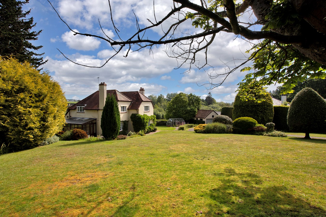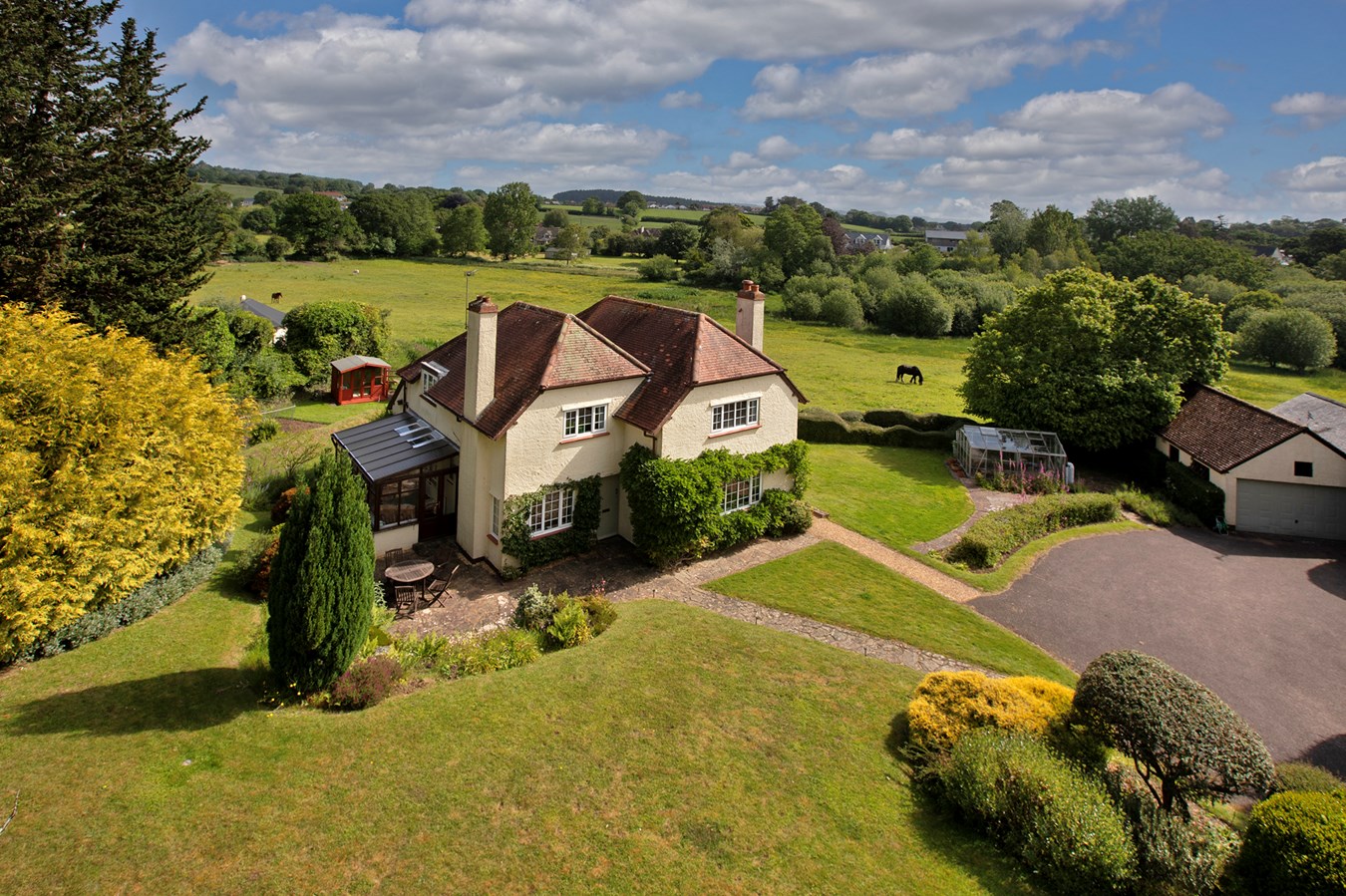 A substantial, detached residence enjoying a unique situation with stunning views over the Knowle valley and surrounding countryside. ‘Furze Moor’ is set within an extremely private plot of nearly 3/4 of an acre, yet despite its scenic location is just over half a mile from the town centre and sea front. Both East Devon Golf Club and the coastal path are in close proximity to the property. ‘Furze Moor’ is an extremely attractive house which was built in the 1920’s, the accommodation is well presented, spacious and flexible. Despite continual improvements by the current owner, many characterful features have been retained, notable examples include some picturesque windows and open fireplaces. Many of the principal rooms enjoy light, double aspects whilst affording pleasant views over the gardens and surrounding countryside. The external fabric of the building is in excellent order and uPVC double glazing has been installed throughout.