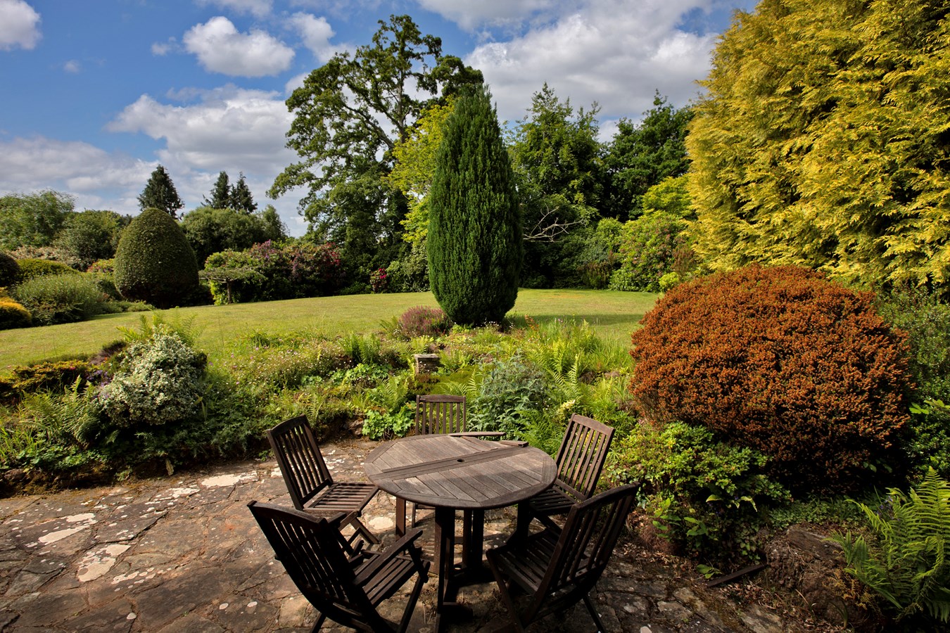 The landscaped gardens surround the property and are orientated to enjoy the sun throughout the day. A variety of trees and shrubs make up the pleasant borders and provide colour and interest through the seasons, none more so than the mature wisteria. The lawn areas are generous in size and interspersed with well stocked beds, with a further area offering a range of established fruit trees and vegetable beds. The large sun terrace spans the front and side of the house, providing a lovely aspect over the gardens and a sheltered area for al-fresco entertaining. The generous sized summer house enjoys a tranquil and scenic spot at the rear of the house, boasting fine views and a southerly orientation. The greenhouse and shed, complete with power, are further notable assets serving the garden. ‘Furze Moor’ cannot be seen from the road and is approached by a private driveway which provides ample private parking and leads directly to the detached double garage and storeroom.
