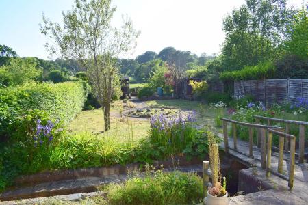 This semi- detached house enjoys lovely views over the surrounding countryside, giving the feel of a semi-rural location, yet situated only a mile from the town centre and sea front of Budleigh Salterton. 'Brambles' stands within a generously sized plot (approximately a fifth of an acre) which is fairly level and boasts a sunny, south westerly aspect with open fields at the rear. An attractive stream runs through the gardens dividing the large sun terrace from the lawn and well stocked borders