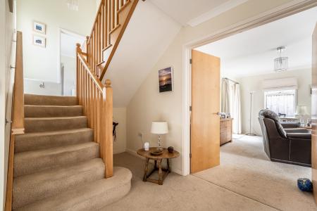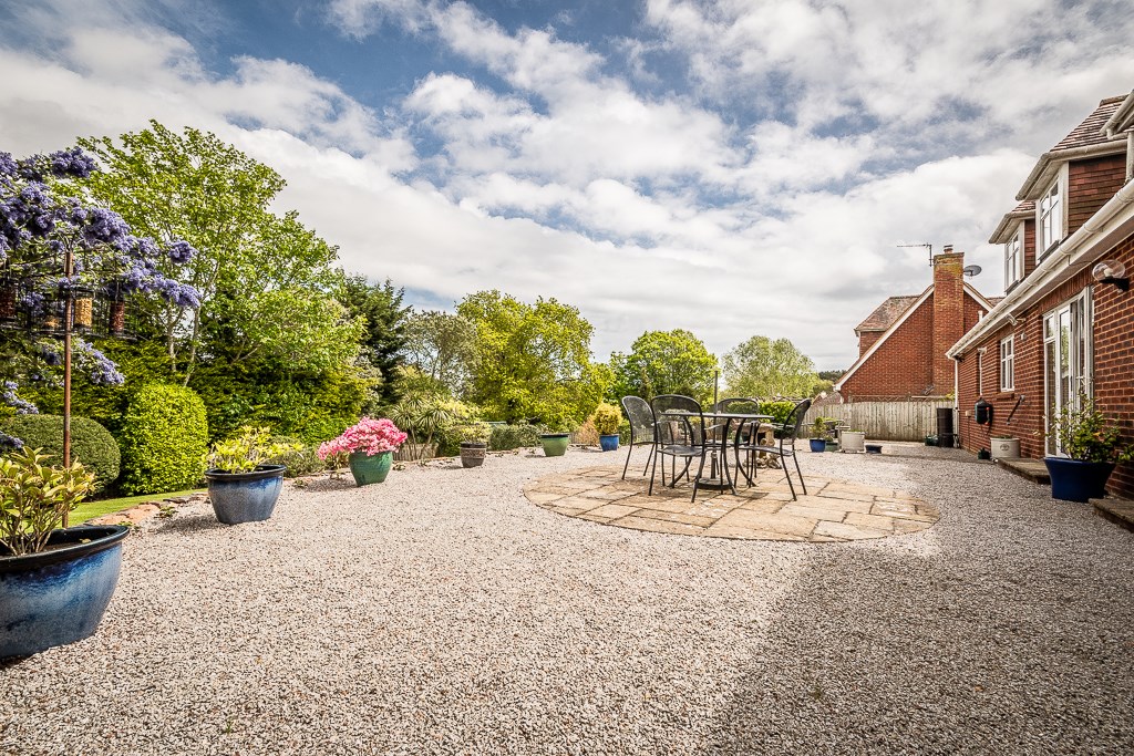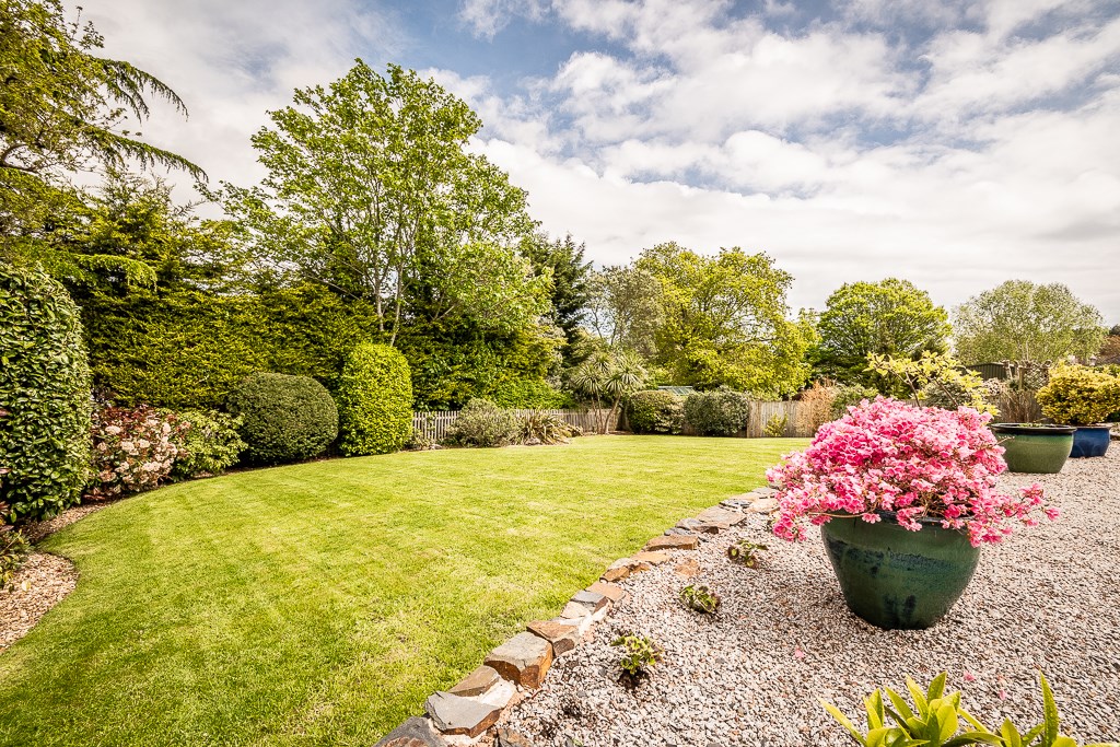 The attractive patio terrace spans the entire width of the house and provides the ideal sitting out / al fresco entertaining area with far reaching views. The remainder of the garden is lawned, interspersed by various specimen trees. All being enclosed by a panelled fence. There is secure access from front to rear on both sides of the property