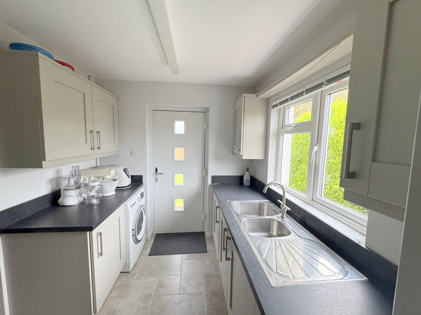 Double glazed back door to the rear elevation and garden, double glazed window to the side elevation. Work surface with double stainless steel sink and drainer unit, base and eye level storage cupboards, space and plumbing for automatic washing machine, wall mounted gas boiler. Door to...