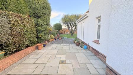 'South Lodge' is set back from Bridge Road behind an attractive front garden screened by mature hedgerow providing a remarkable degree of seclusion. Double five bar gates provide access to a wide patterned concrete driveway leading to the integral double garage. The driveway has an exterior power point and is flanked by low brick walls with a mature shrubbery to the right hand side and a flowerbed with a secluded grass-crete area suitable for parking trailers and boats to the left hand side. Further down this left hand side of the house there is a sunny patio area. To the right hand side there is a pathway leading to the shed.