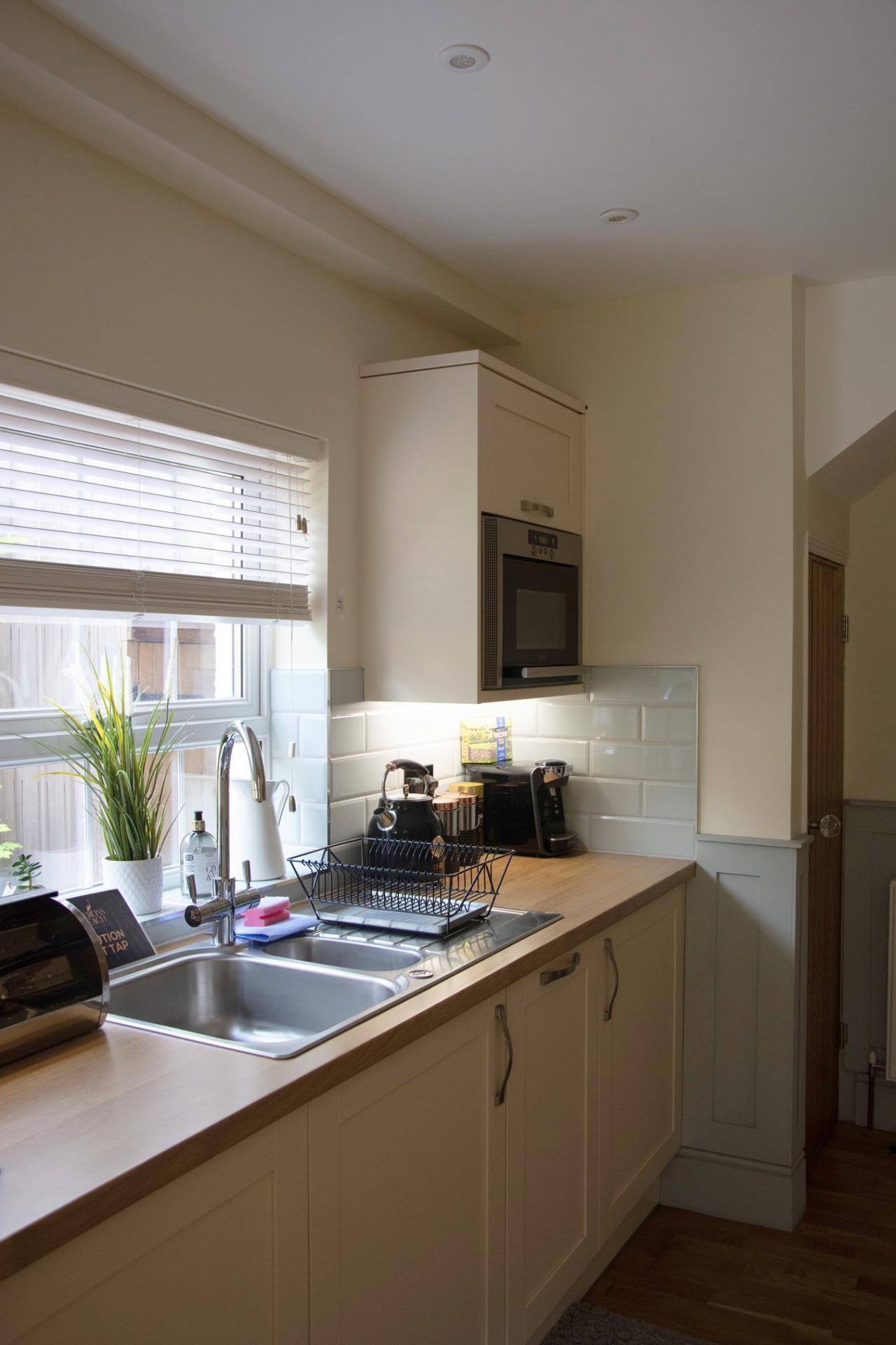 * Kitchenette fitted with a sink, portable hob, Toaster and Kettle and a full sized microwave.