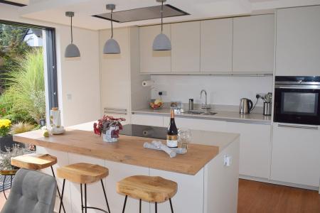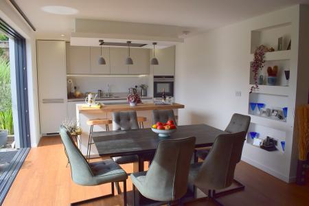 This kitchen incorporates a range of quality units with built-in Siemens appliances including electric hob with extractor and light unit over, built-in combination oven, built-in dishwasher and fridge/freezer. Island unit incorporating breakfast bar with lighting over, range of base and eye level units and drawers, inset one and a half bowl sink unit with mixer tap and expanse of work surface ( not in island ).