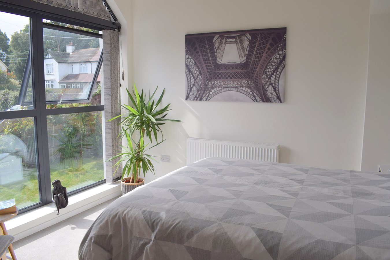 Double glazed window to front elevation, Velux window with remote electric blind, built-in cupboard, further built-in storage cupboards, radiator with thermostatic control, TV point. Venetian blinds.
