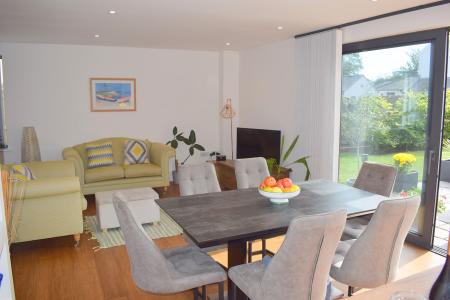 A luxury, architect designed, detached house set in a popular location and on a level plot. There are grounds incorporating a driveway for parking several vehicles. Paved patio plus a level and sunny aspect lawned garden.