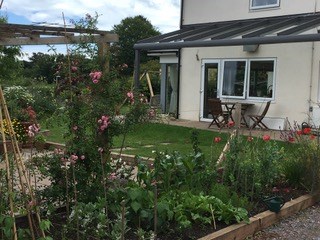 Supplied by AP Kitchens Three Bridges. Quooker boiling water tap. Electric Aga. Neff Gas hob. Neff Electric fan oven. Vented extractor fan. Waste bins in cupboard under sink. Space for American fridge freezer water supply direct change filters every 6 months. Electric sockets; under wooden area of island Behind fridge freezer. Under sink. In corner by back door plus TV aerial and ethernet. Electric sockets and switches: Along wall work surface. In double cupboard to left of electric oven. Electric socket with USB ports under wooden area of island