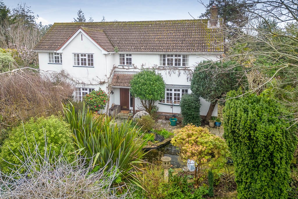 A well designed, modern detached house enjoying a tranquil and scenic location in one of Budleigh Salterton’s most favoured roads, just a short walk from the Otter Estuary and sea front. The property enjoys a quiet situation , not visible form the road, down a small shared private driveway enjoying a high degree of privacy and a large South / West facing garden.
