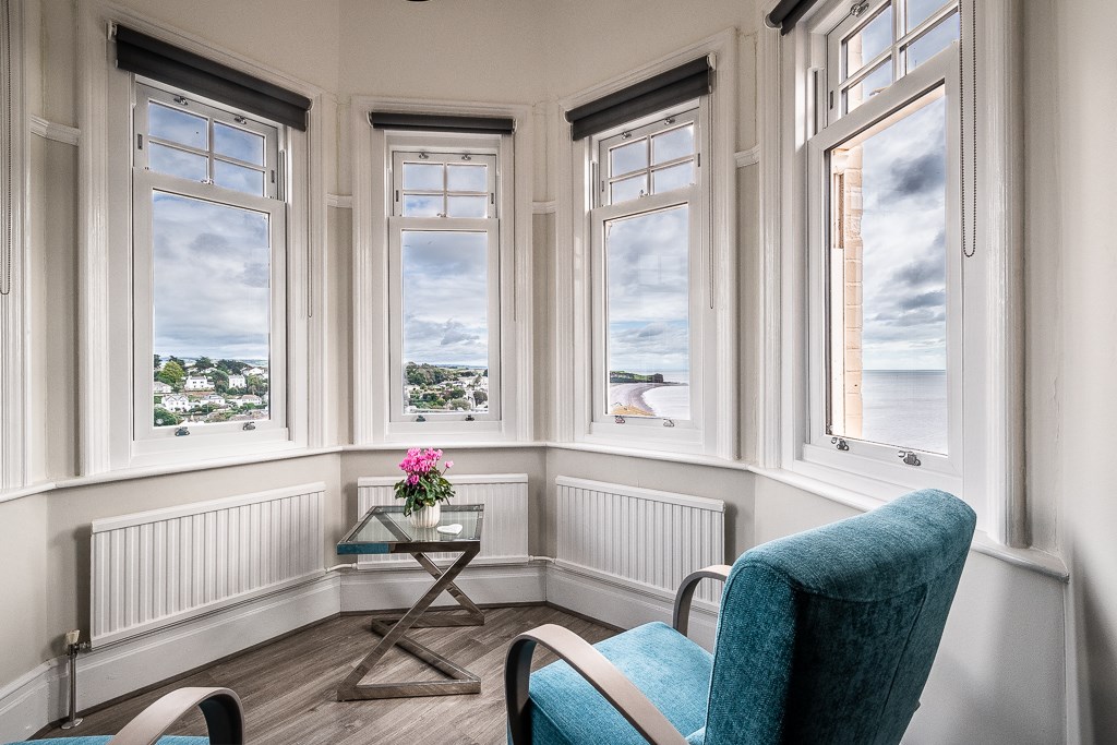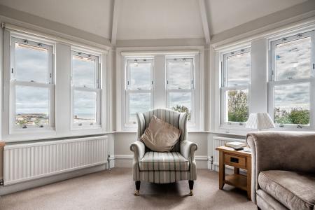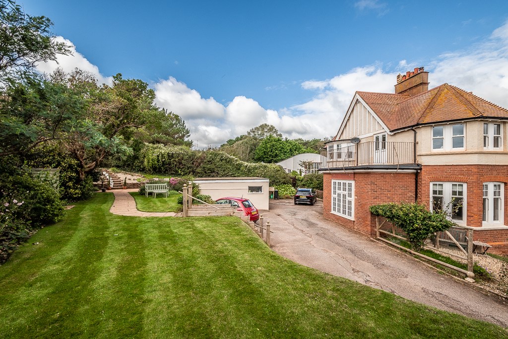 A unique, first floor apartment with stunning views along Budleigh beach, on to Otter Head and across the whole of Lyme Bay. Panoramic views also extend over the town towards the surrounding countryside beyond. This stunning home makes up the entire first floor of this property, which was built around 1900, and is undoubtedly one of Budleigh Salterton’s most attractive residences. The property enjoys an elevated, southerly aspect and sits within a charming plot of a third of an acre. Being situated at the top of Victoria Place it boasts a desirable location within a quiet conservation area, yet conveniently provides direct access onto the cliff path which links Jubilee Field, the sea front and town centre.
