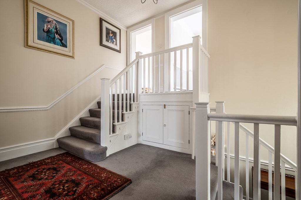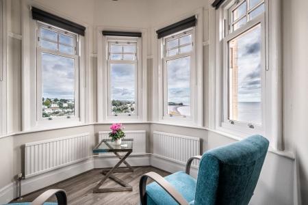 The owners have retained many unspoilt, characterful features, notable examples include high ceilings with fine mouldings, bay windows, stained glass and a wonderful reception hall with an attractive staircase. A more contemporary addition was the sun balcony off the sitting room which enjoys the sun all day and provides the most amazing beach and coastal views.