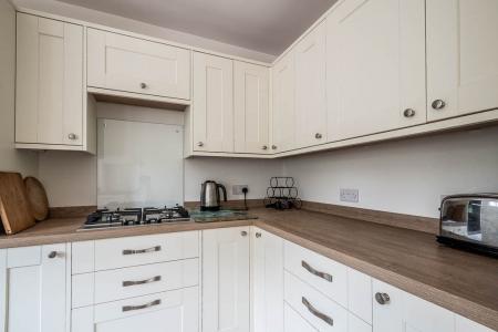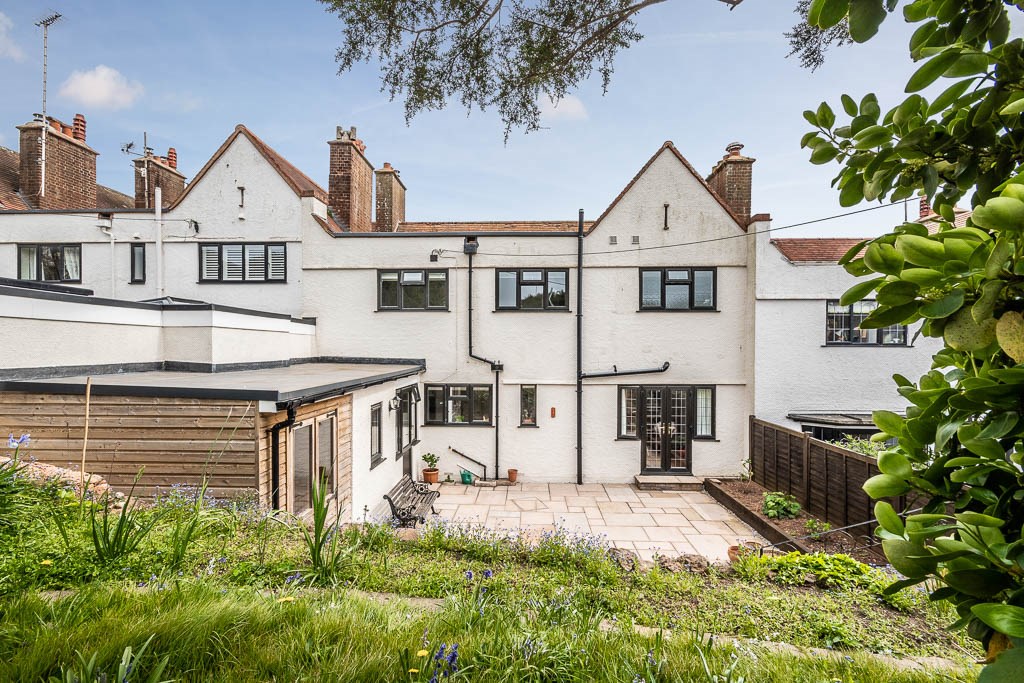 The rear garden is well screened and private with a pleasant sun terrace. It is designed for ease of maintenance with a shrub planter. Outside cold water tap and exterior light for convenience. Steps rise to a further smaller area of garden which could be used for growing vegetables. The summerhouse makes the most of the rear garden views and the south westerly aspect. The integral brick built tool shed has light and power.