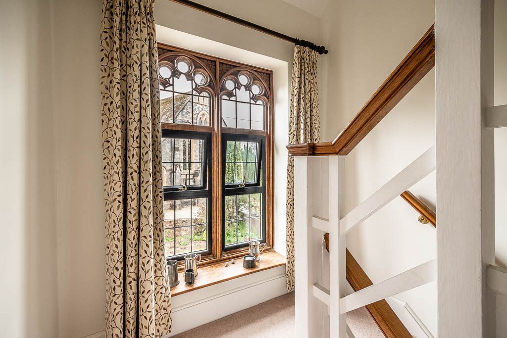 The first floor benefits from 3 double bedrooms (all with built in wardrobes), 1 single bedroom a luxury family bathroom and an en-suite shower room to the main bedroom. The bathroom suites are of the highest quality, boasting contemporary fixtures and fittings throughout. There are lovely views from the front overlooking the church and at the rear looking over the garden.
